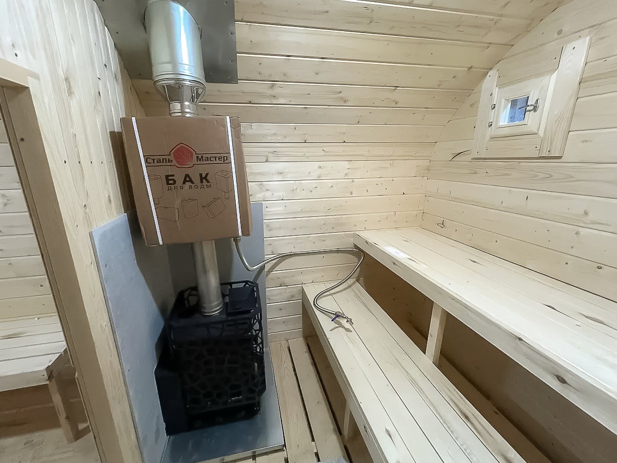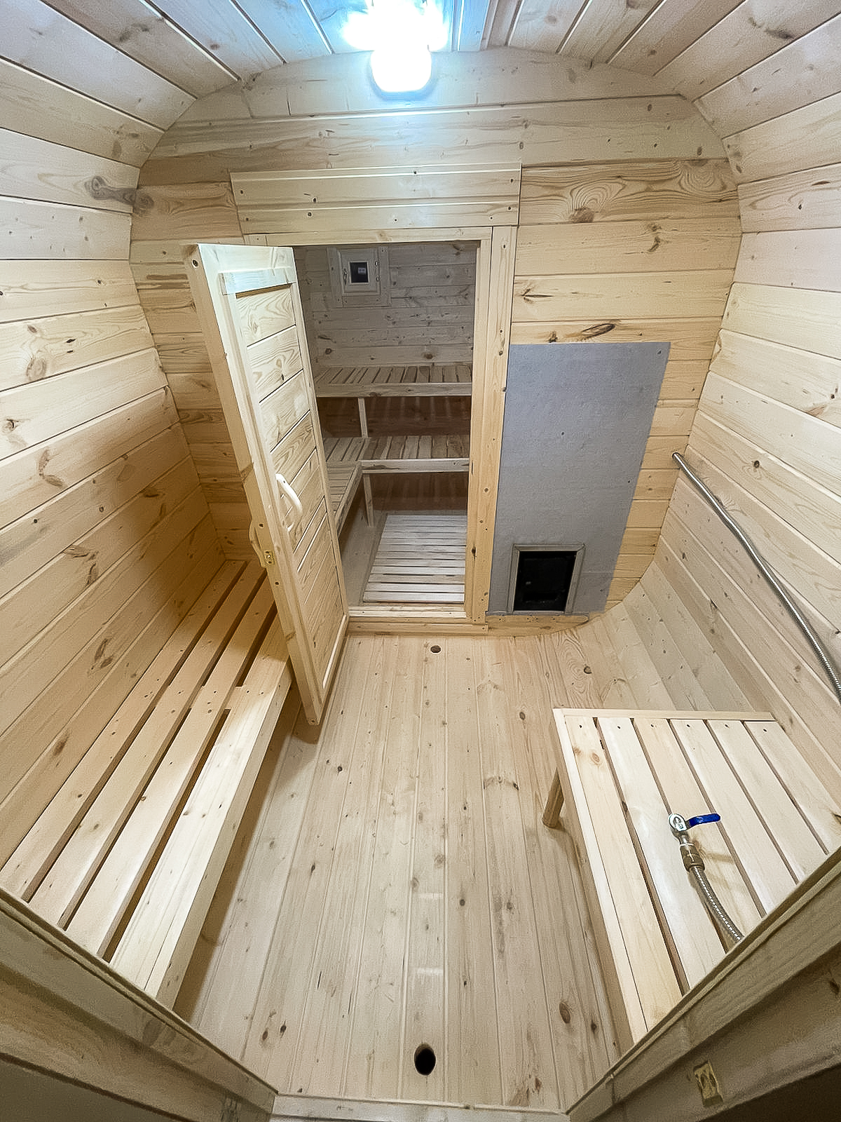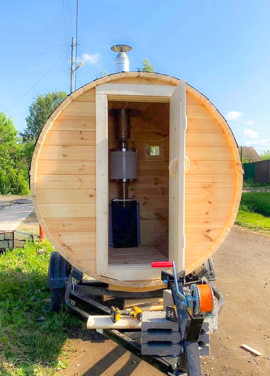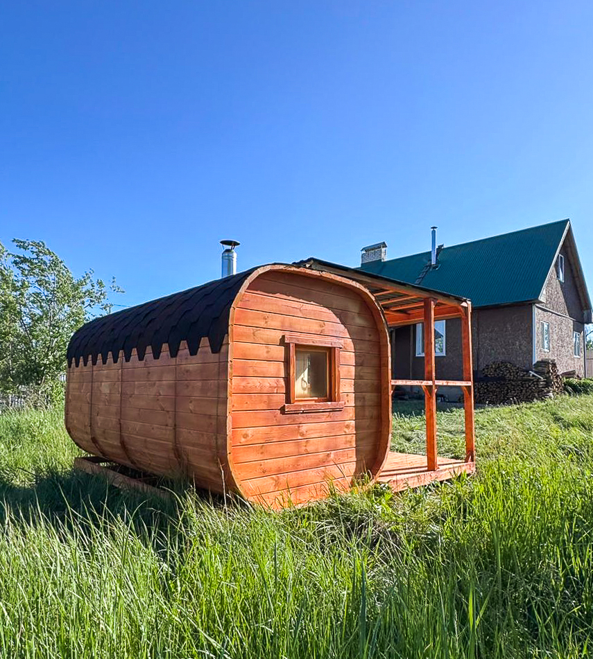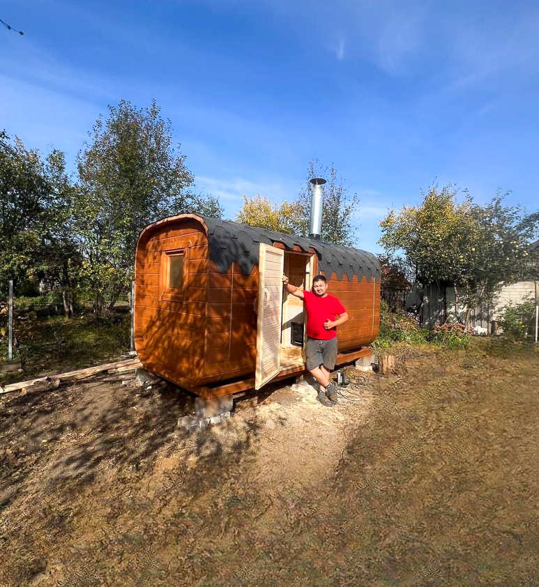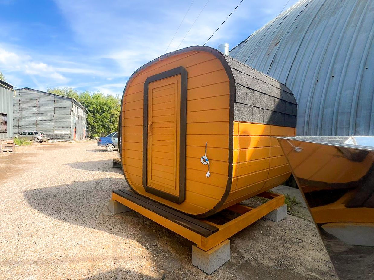 - Высота: 2,5 м снаружи / 2,3 м внутри — просторнее стандартной бочки;