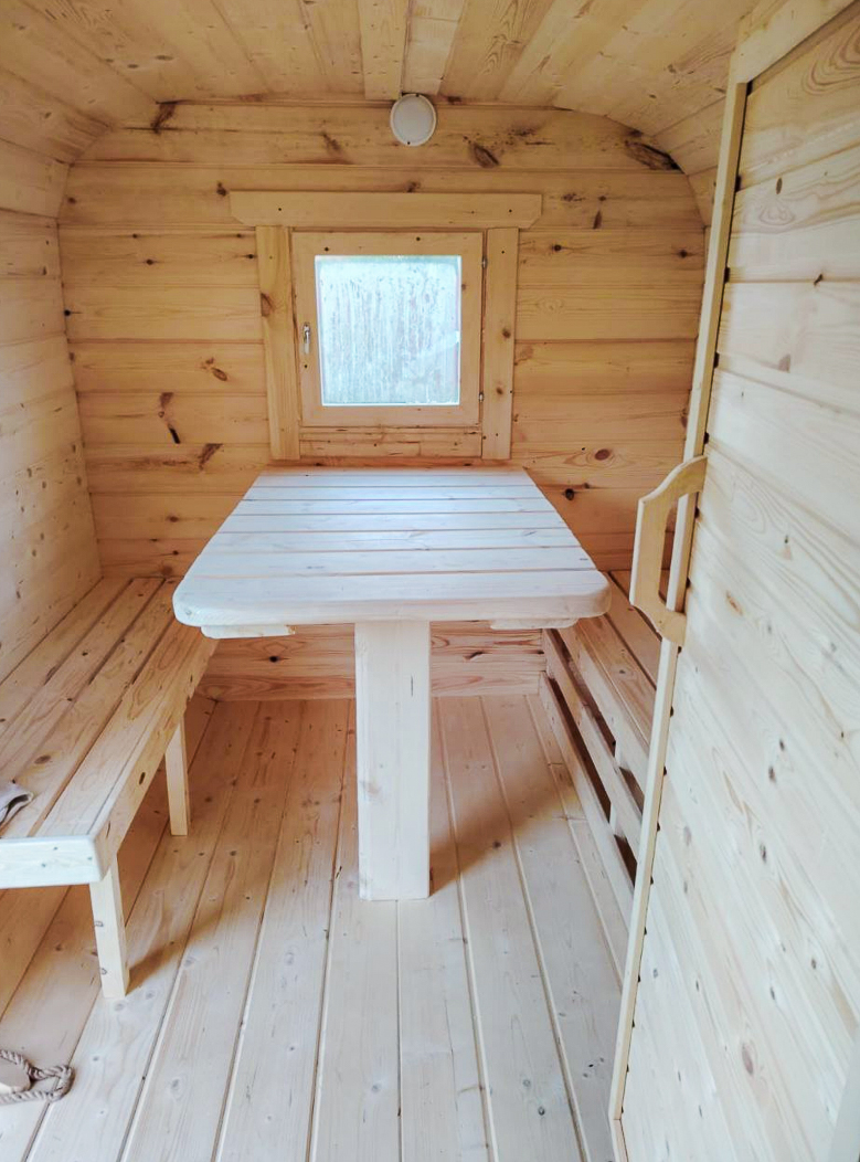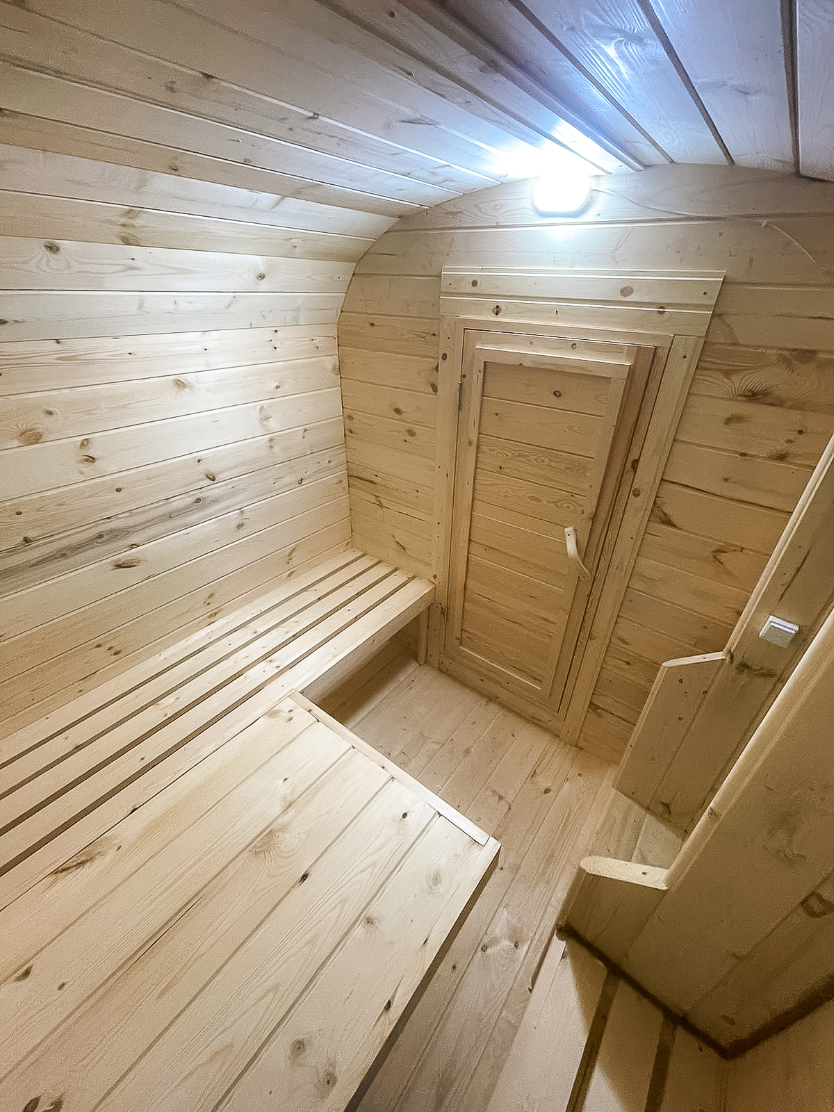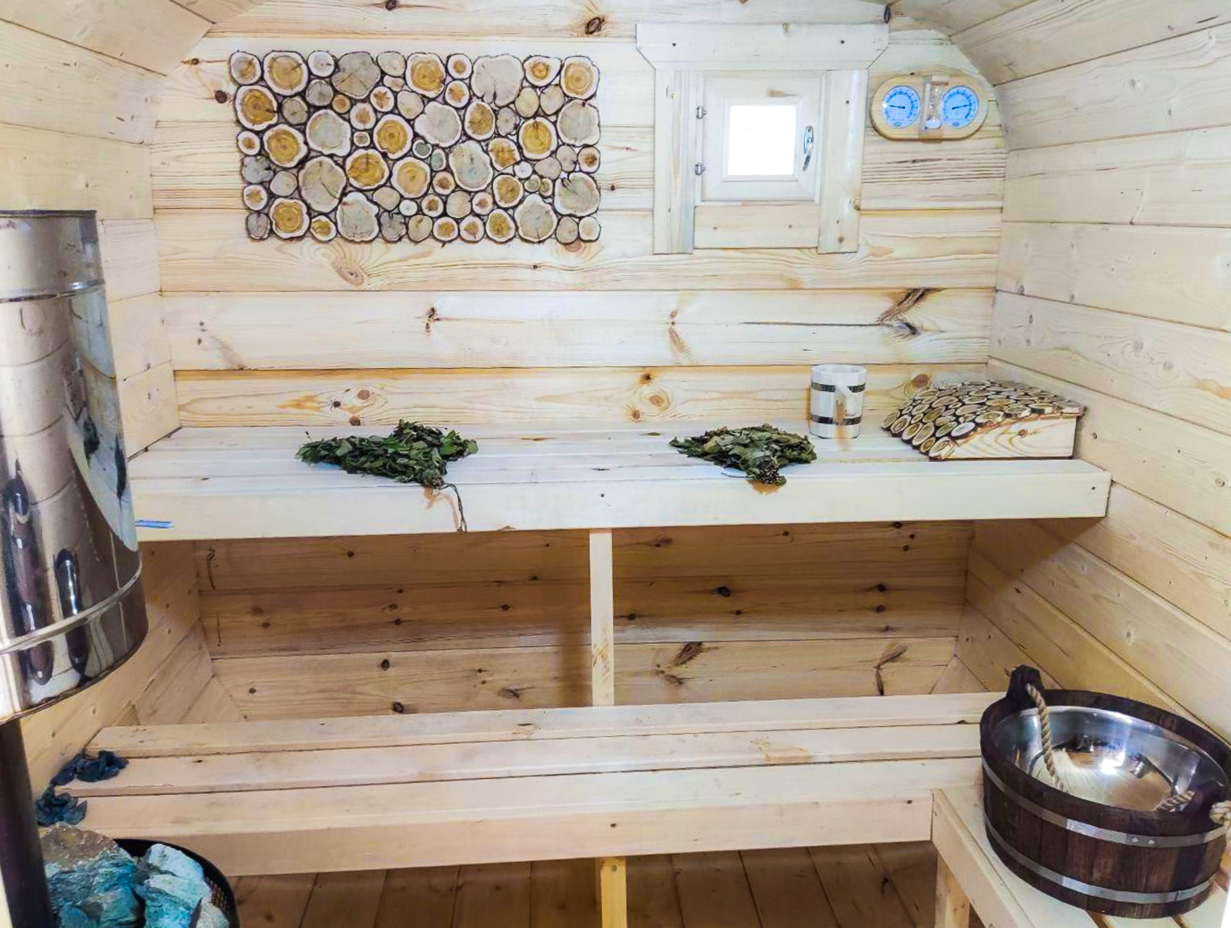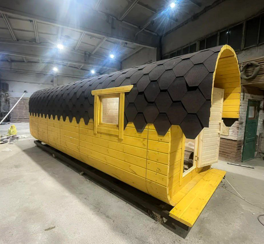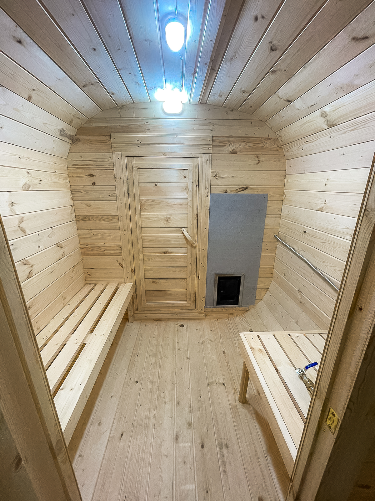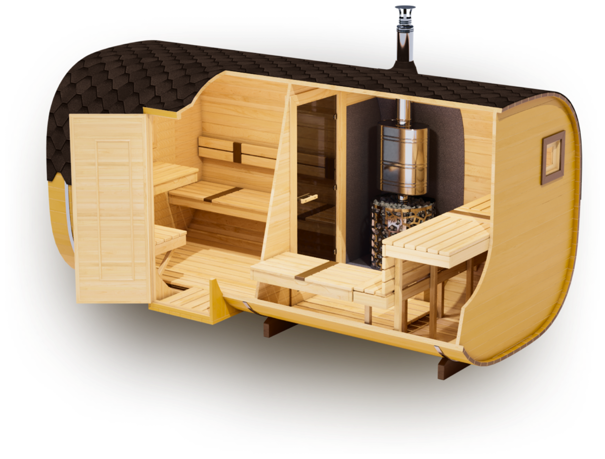 - Высота: 2,5 м снаружи / 2,3 м внутри — просторнее стандартной бочки;