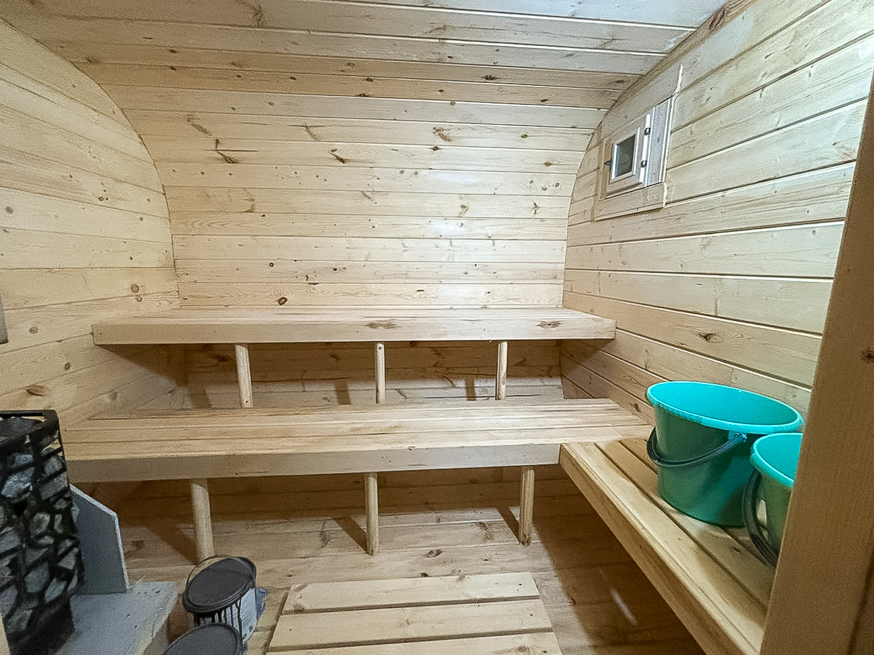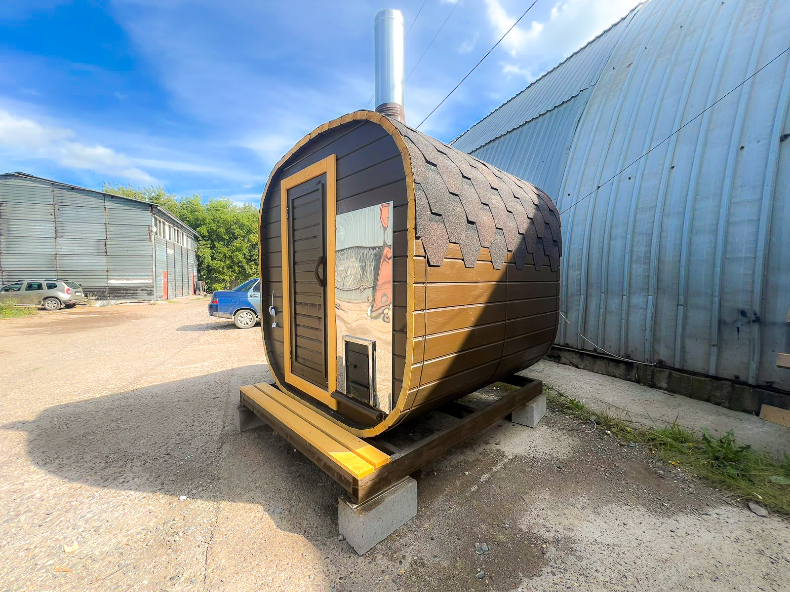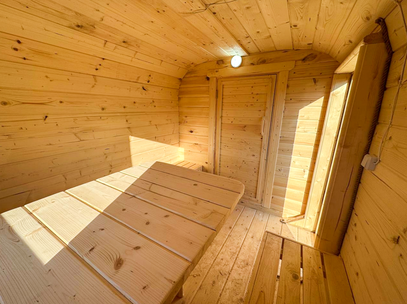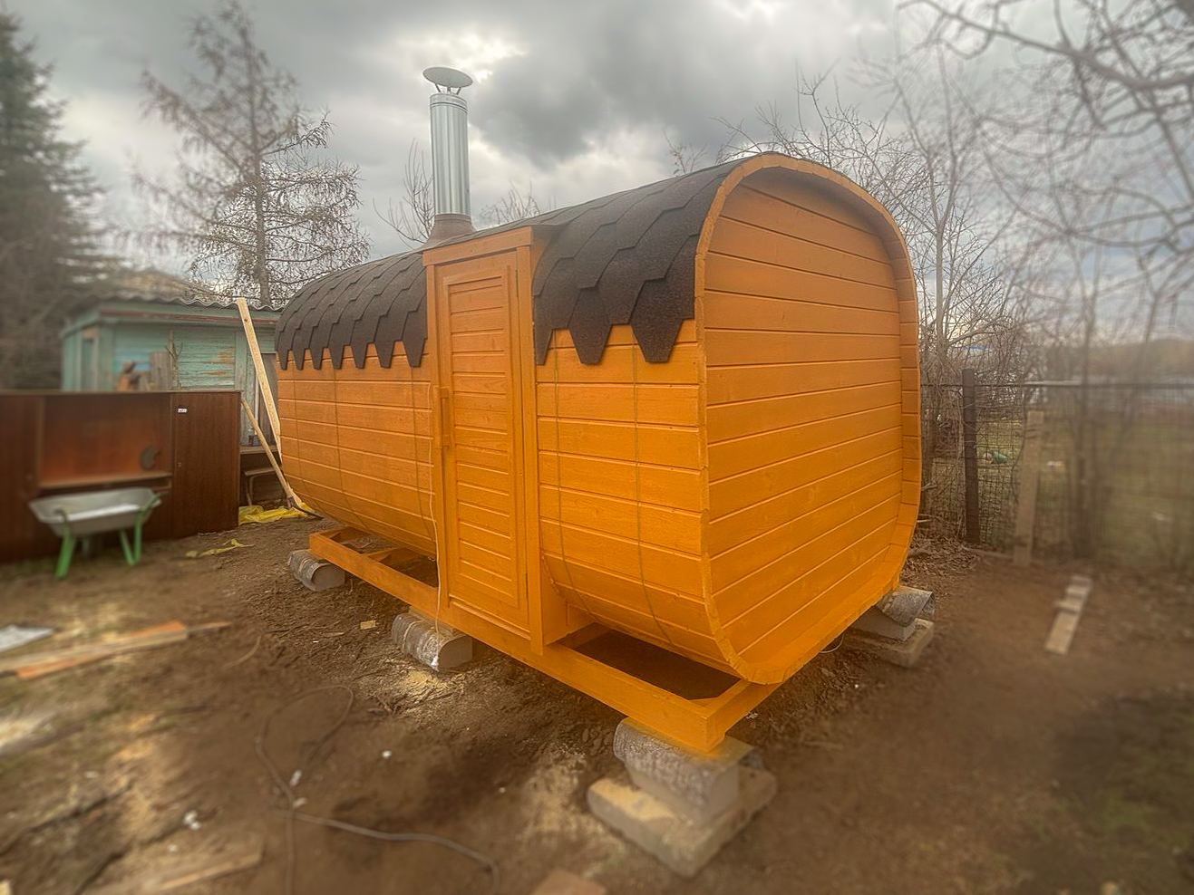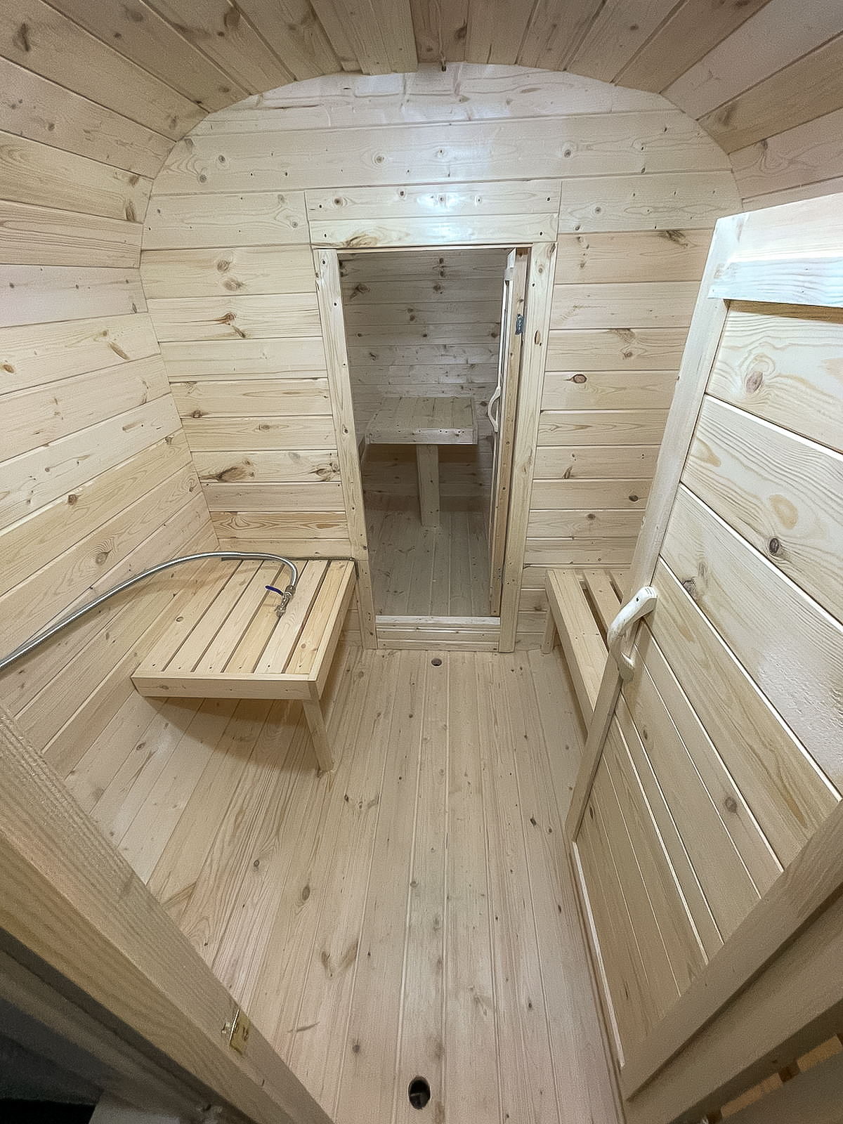 - Высота: 2,5 м снаружи / 2,3 м внутри — просторнее стандартной бочки;