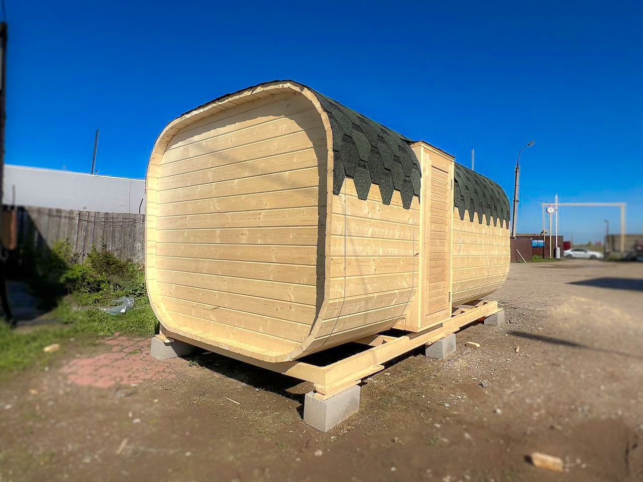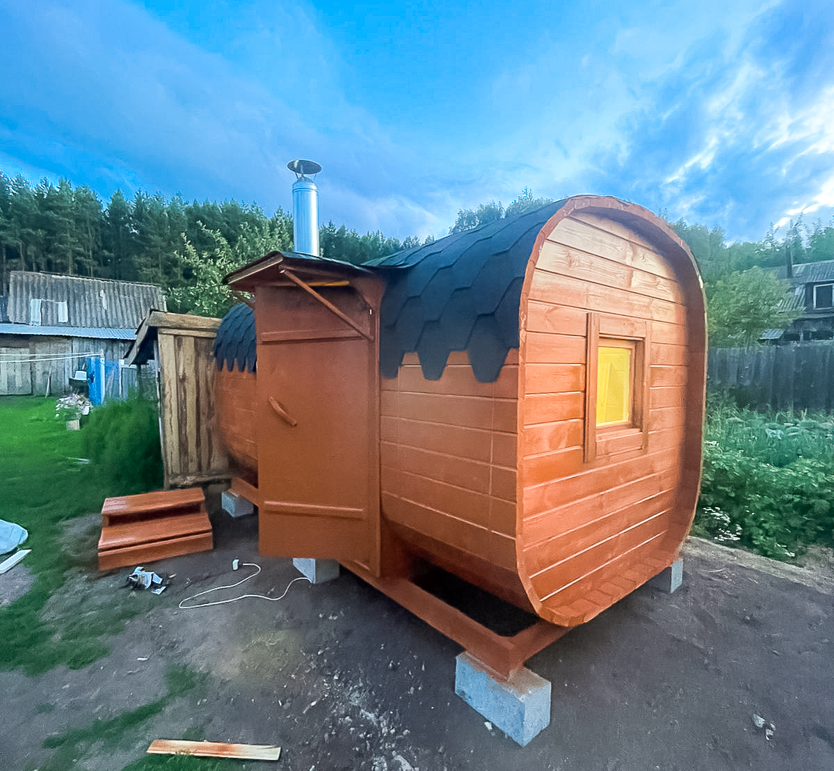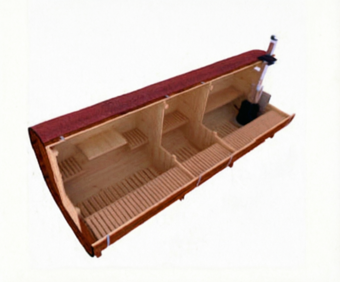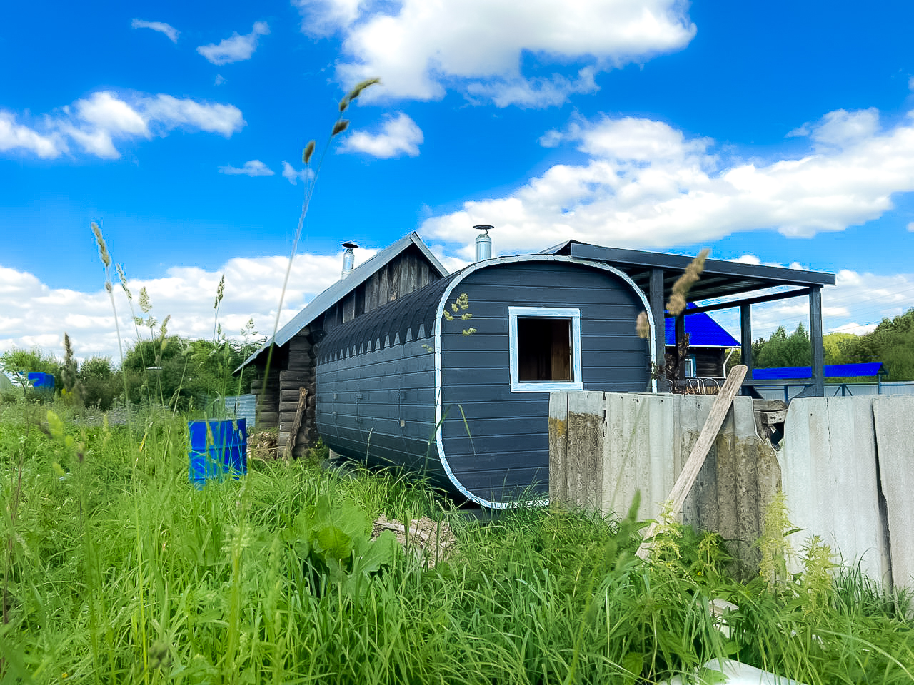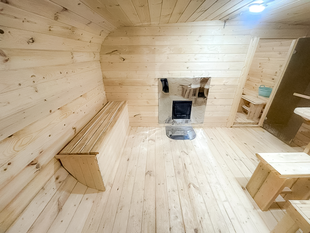 - Высота: 2,5 м снаружи / 2,3 м внутри — просторнее стандартной бочки;