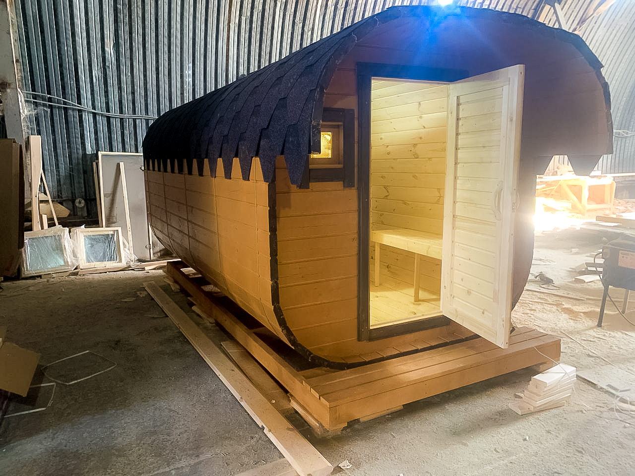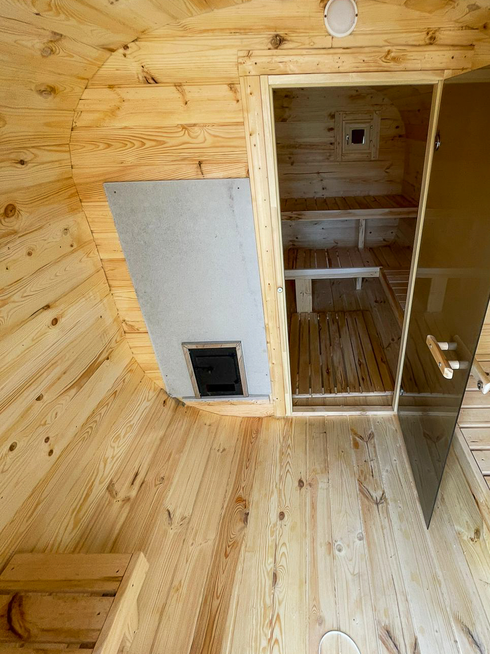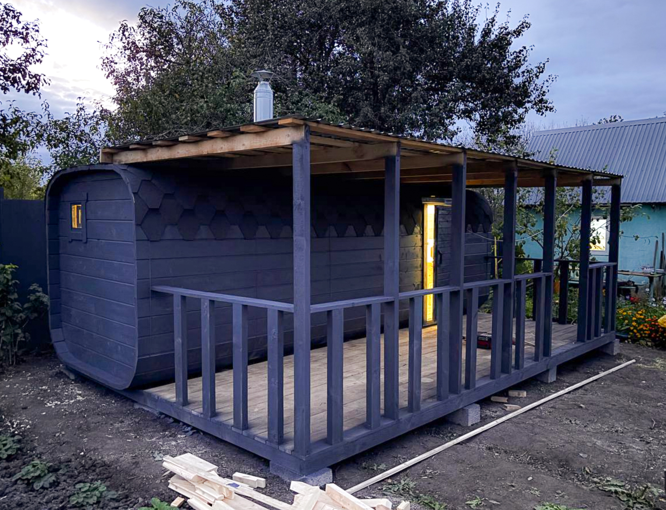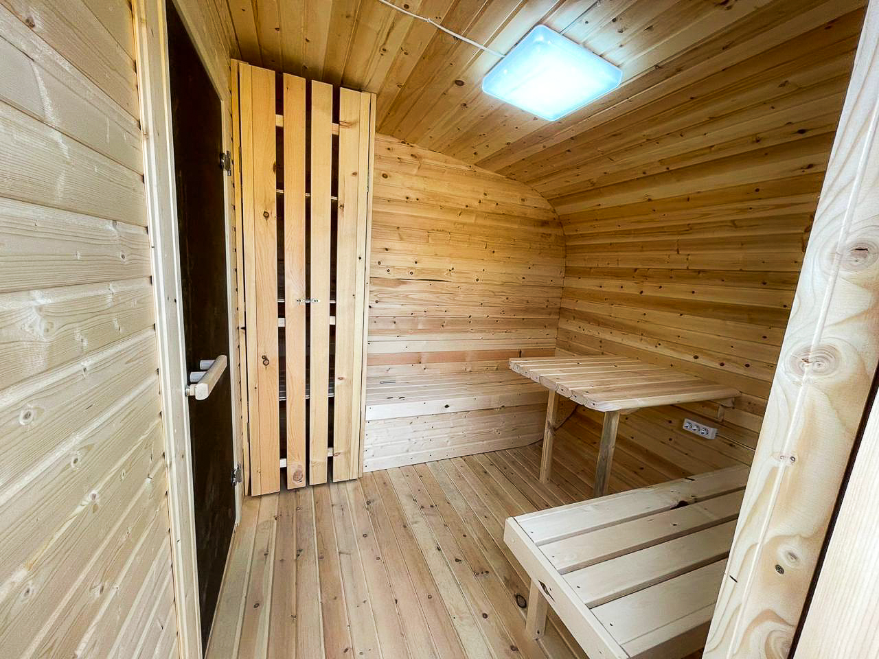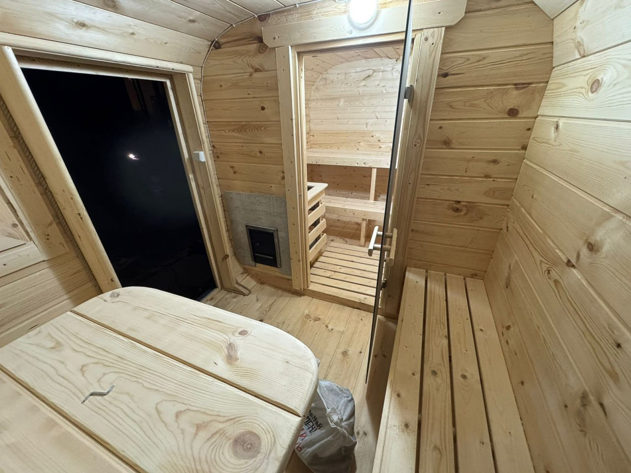 - Высота: 2,5 м снаружи / 2,3 м внутри — просторнее стандартной бочки;