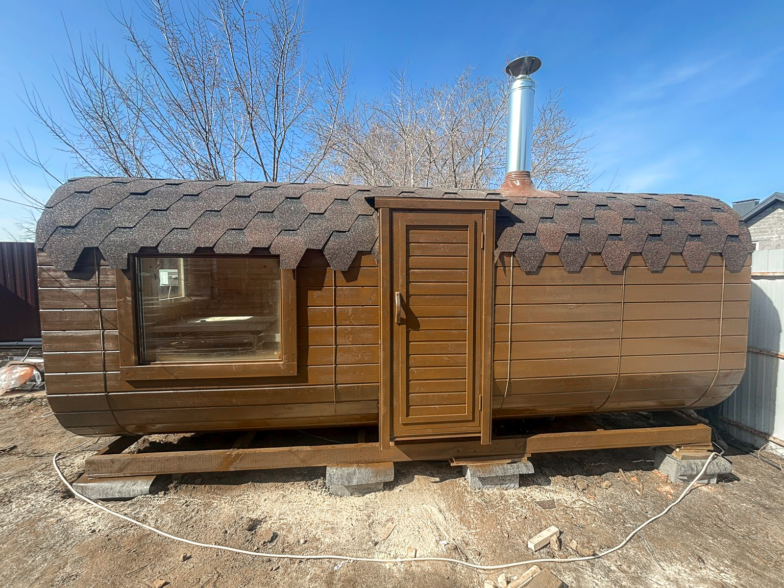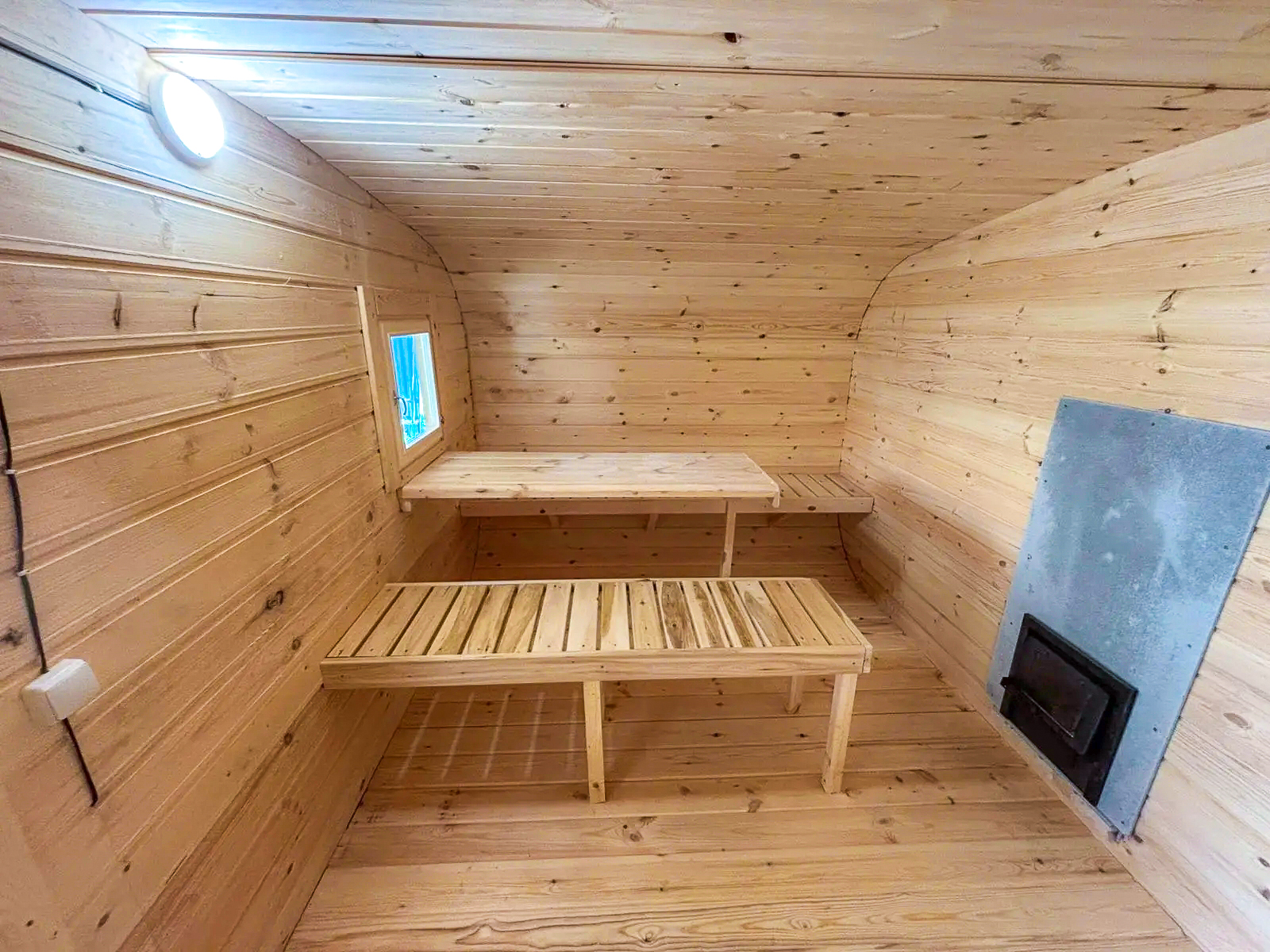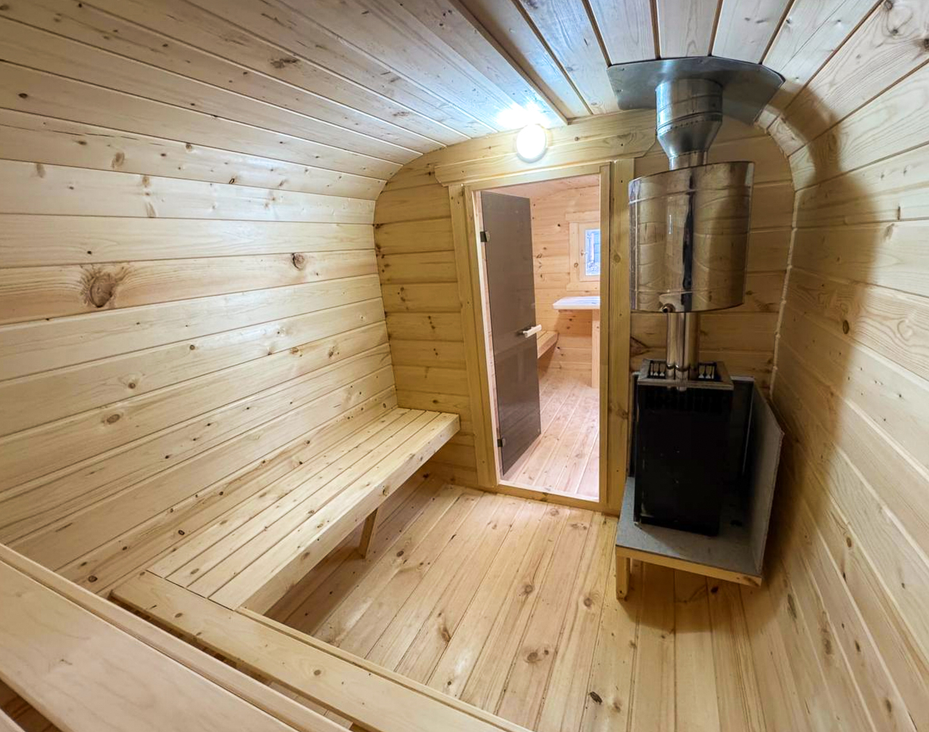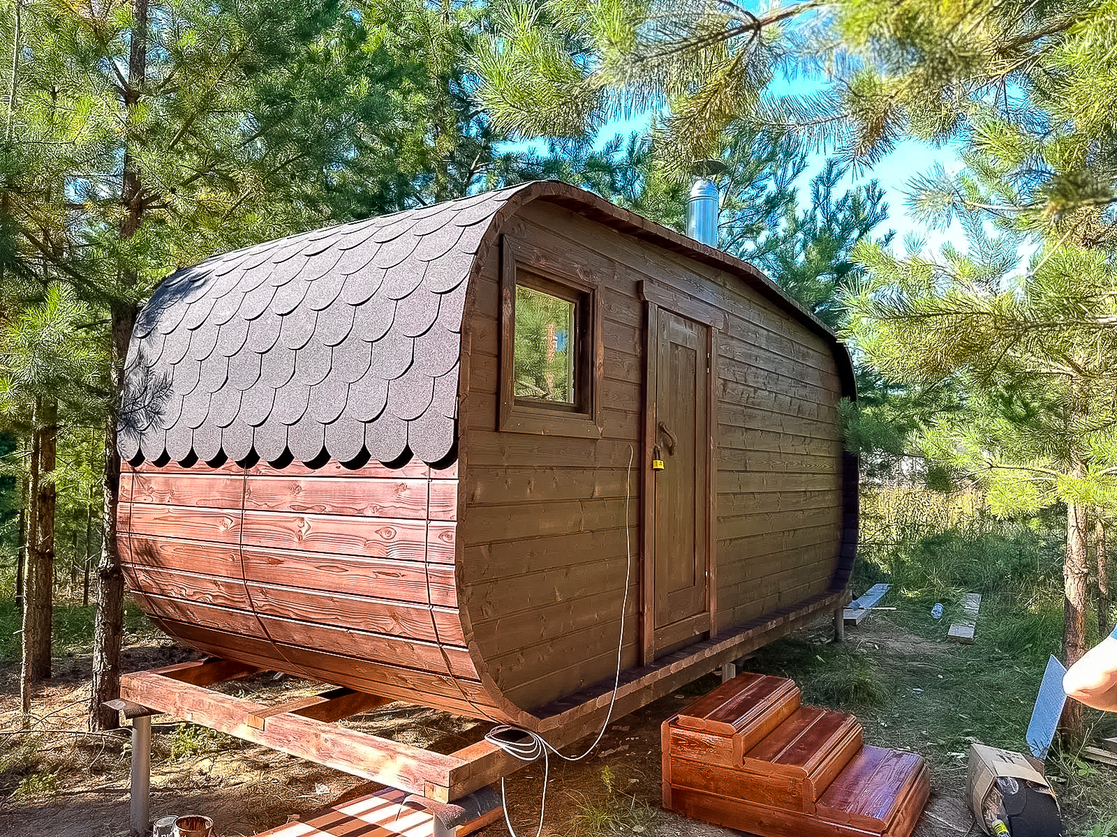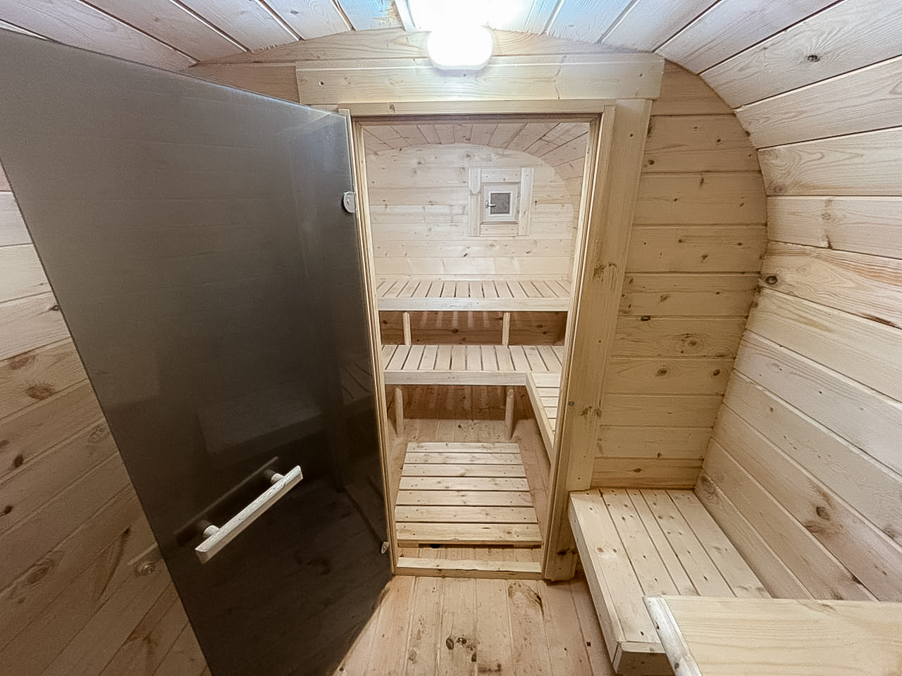 - Высота: 2,5 м снаружи / 2,3 м внутри — просторнее стандартной бочки;