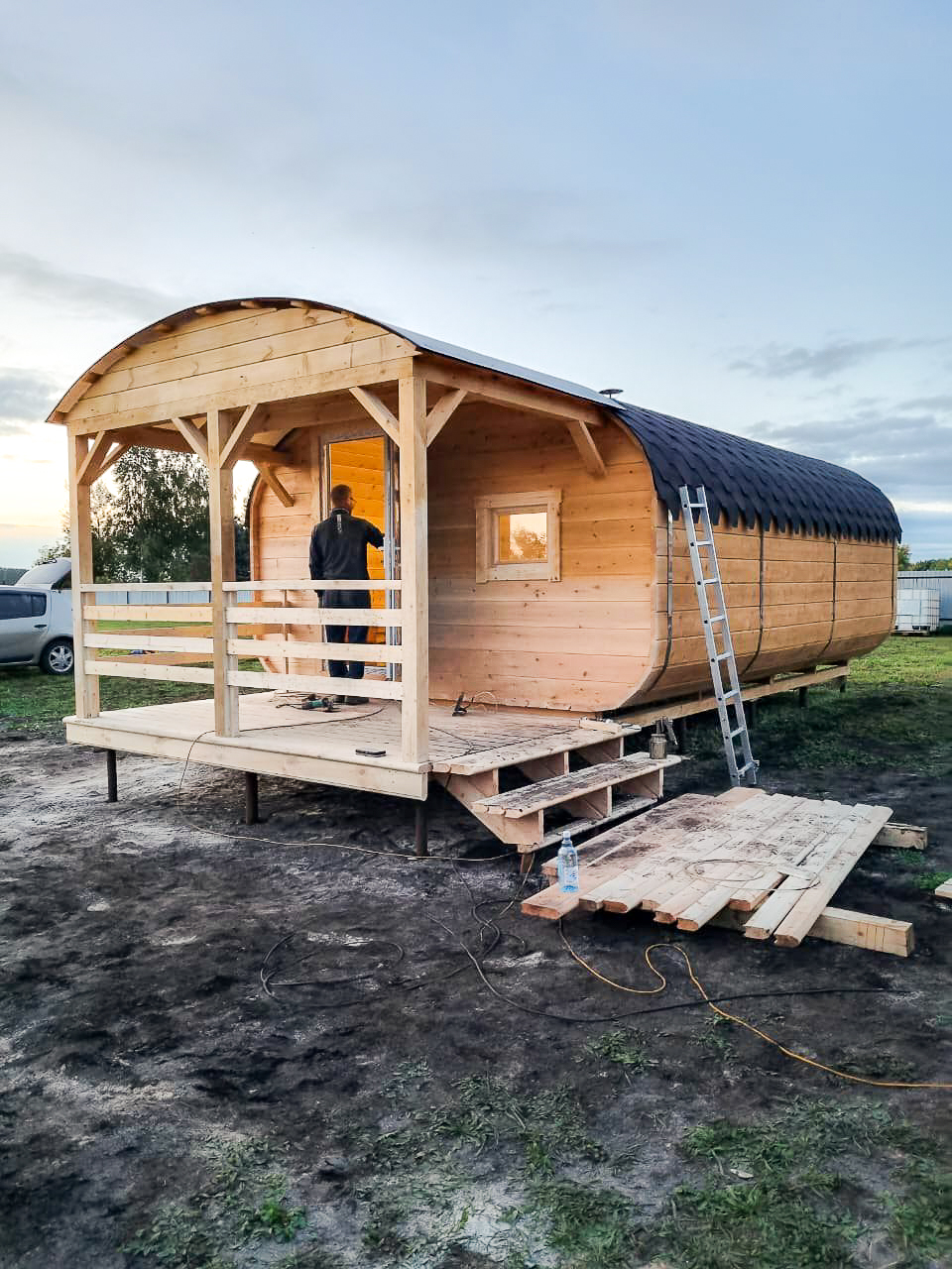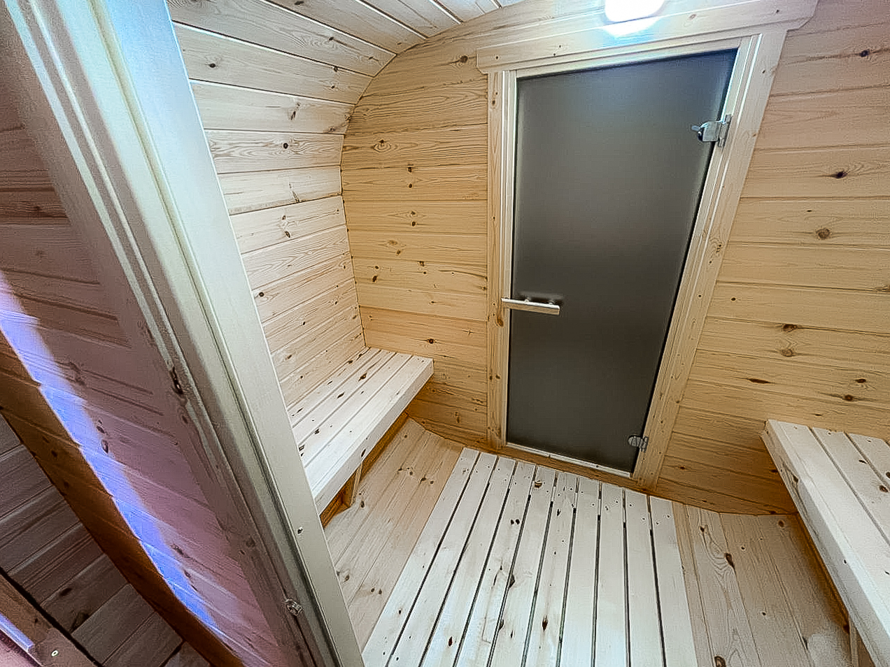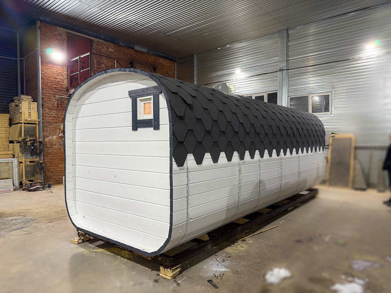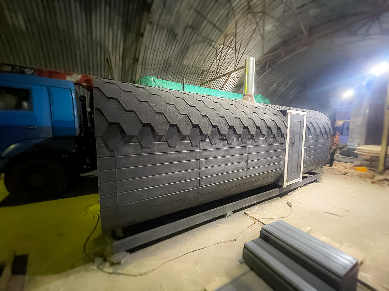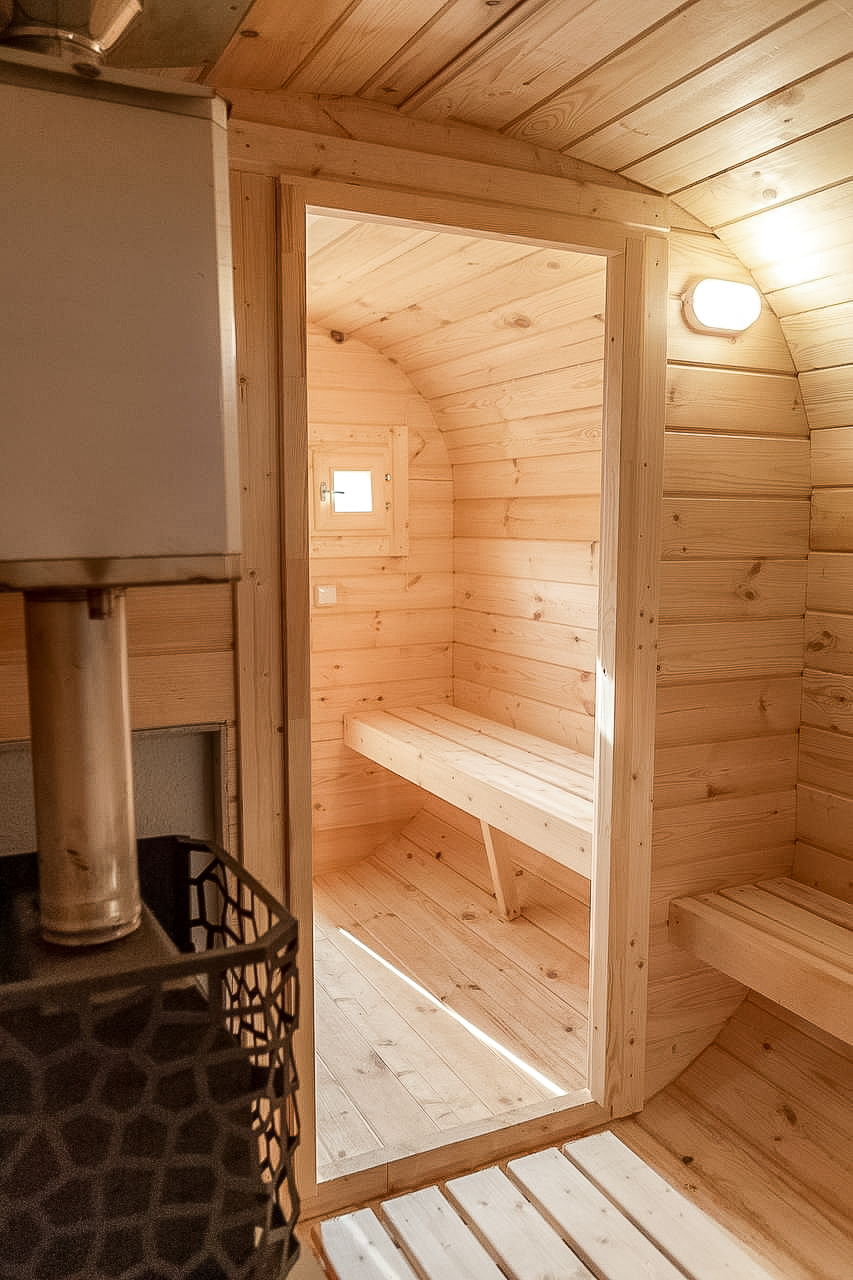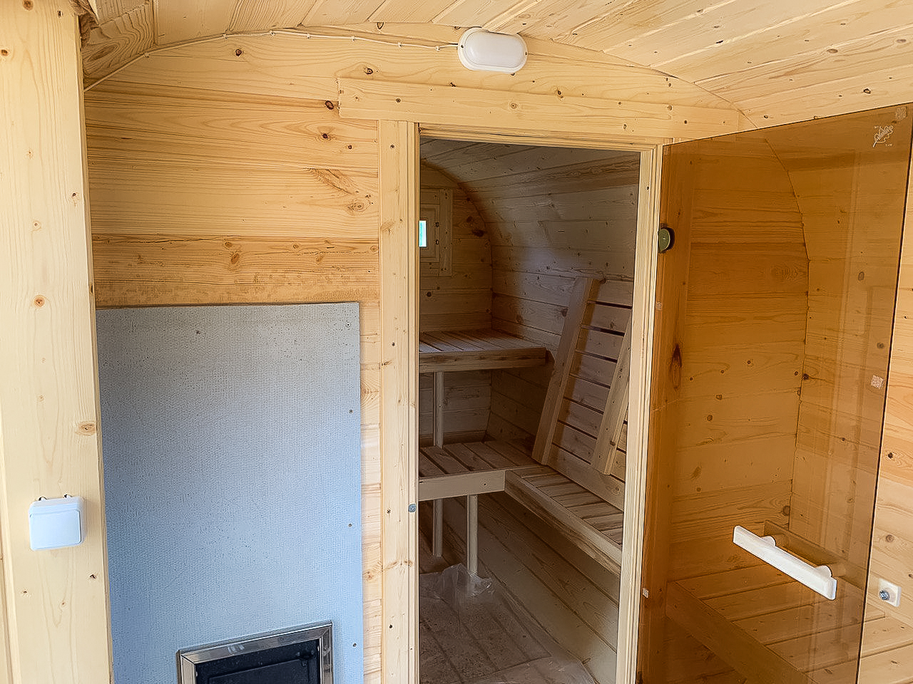 - Высота: 2,5 м снаружи / 2,3 м внутри — просторнее стандартной бочки;