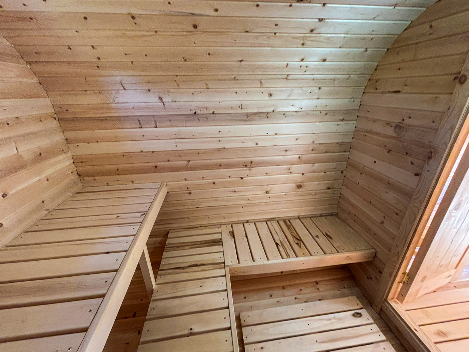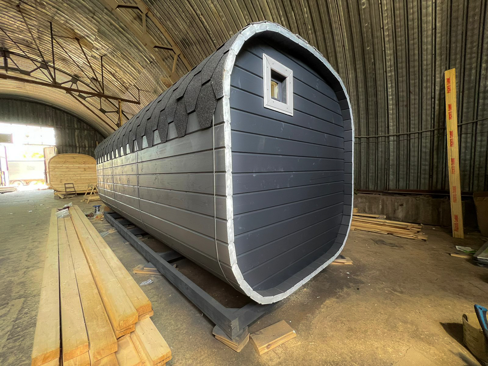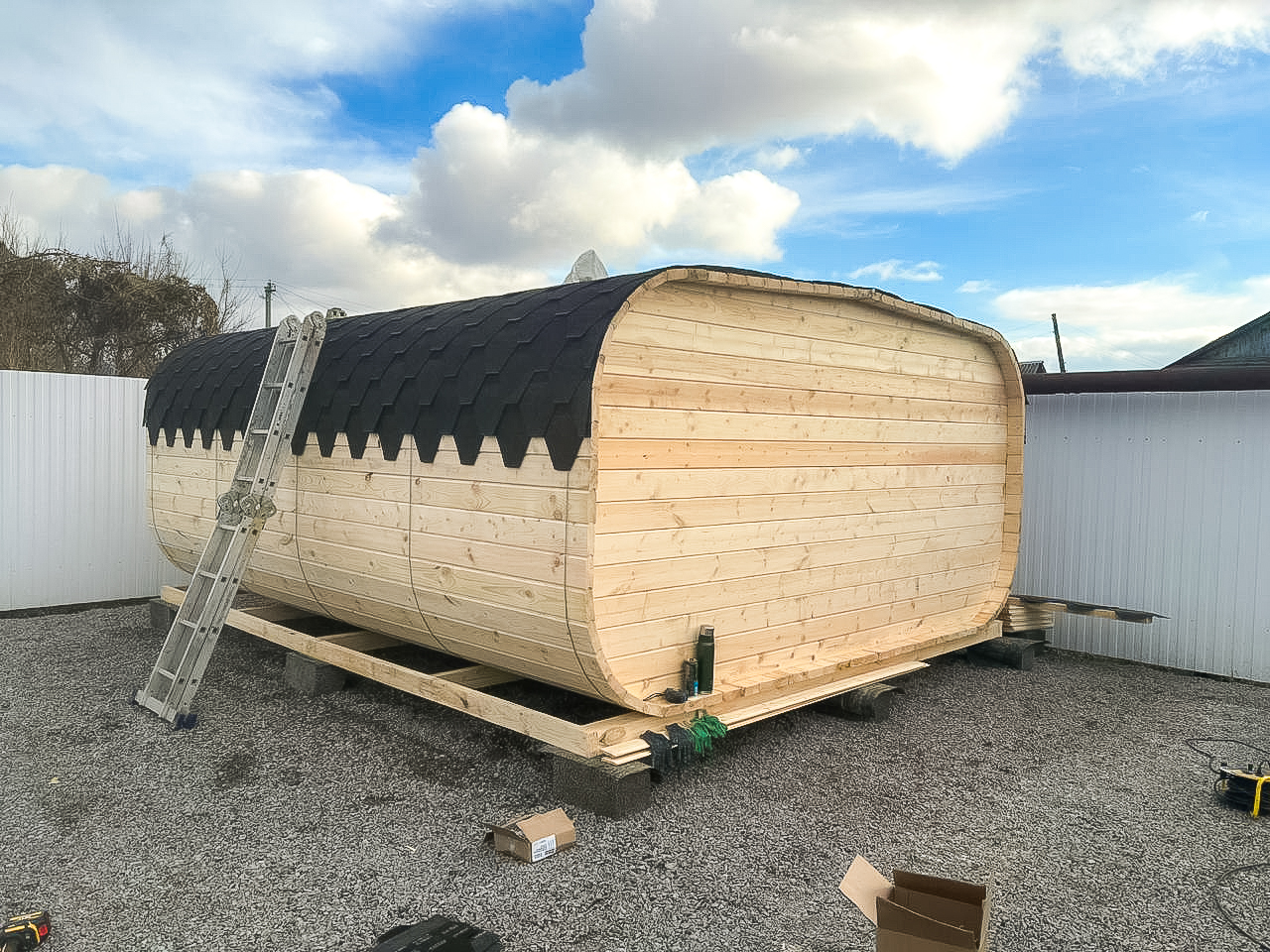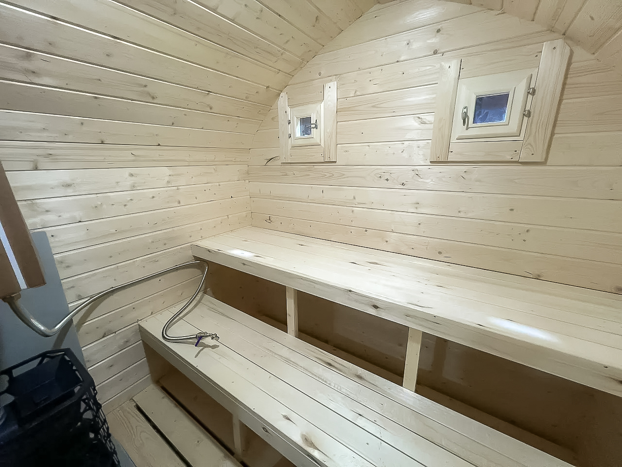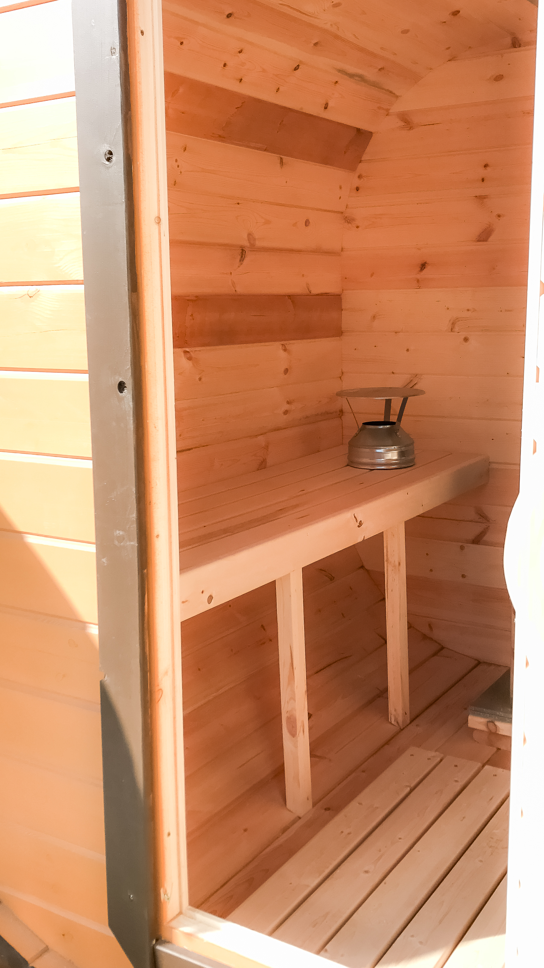 - Высота: 2,5 м снаружи / 2,3 м внутри — просторнее стандартной бочки;