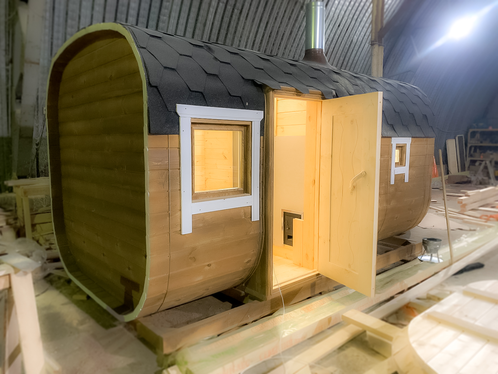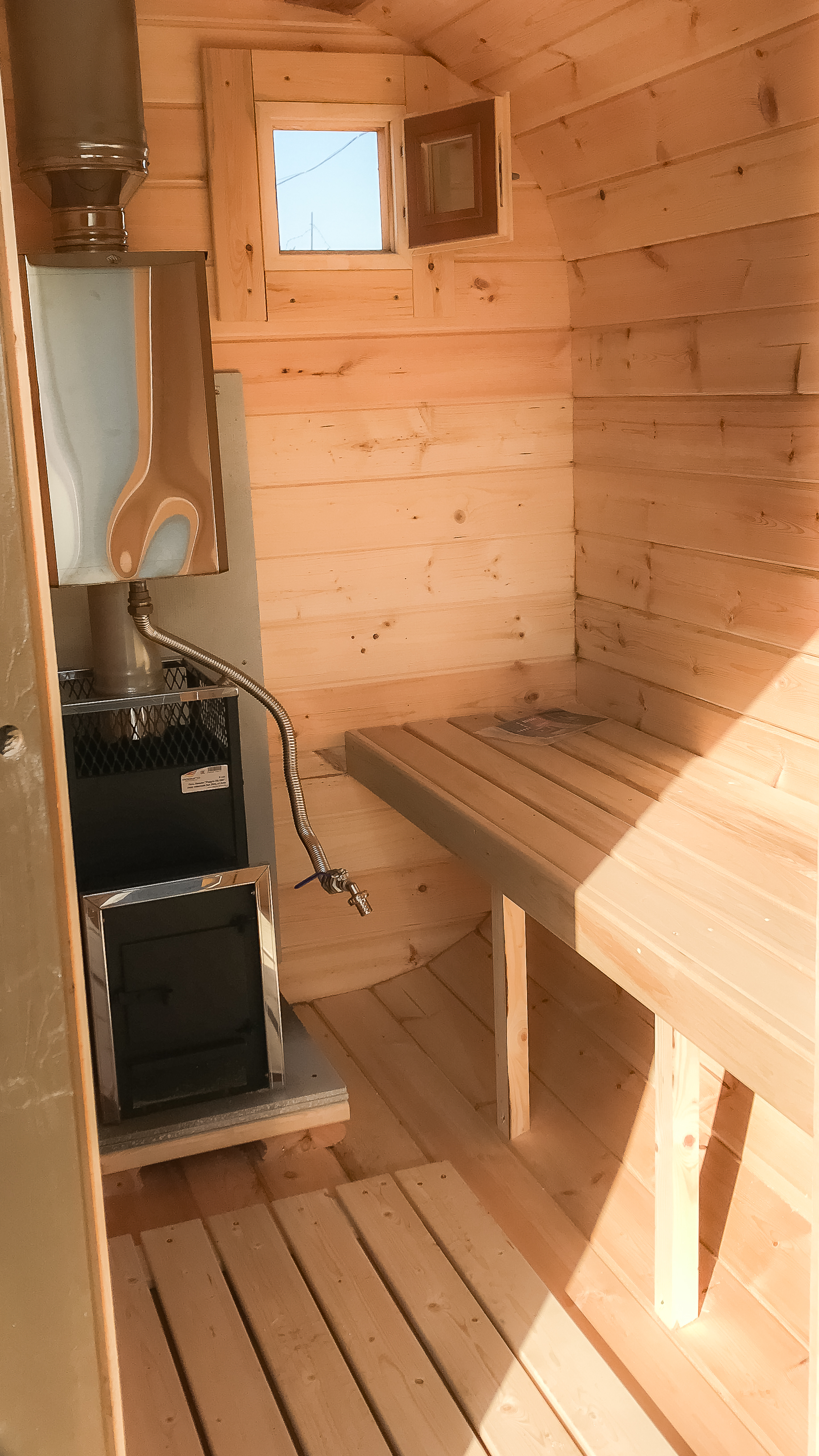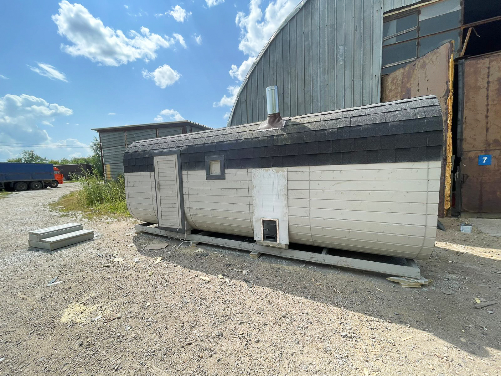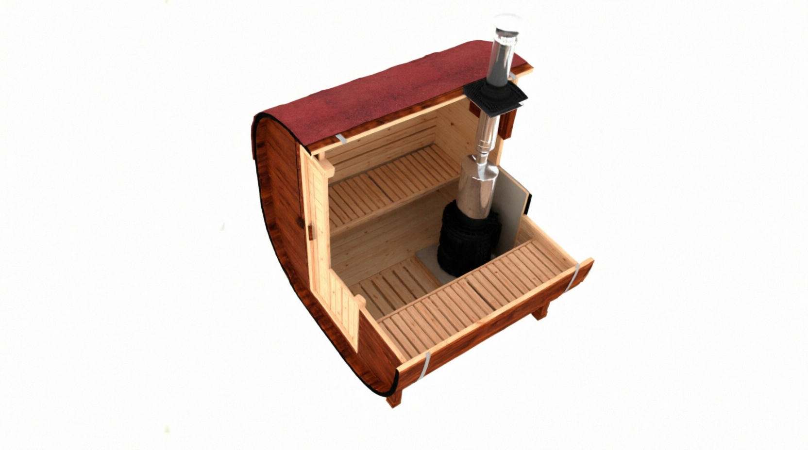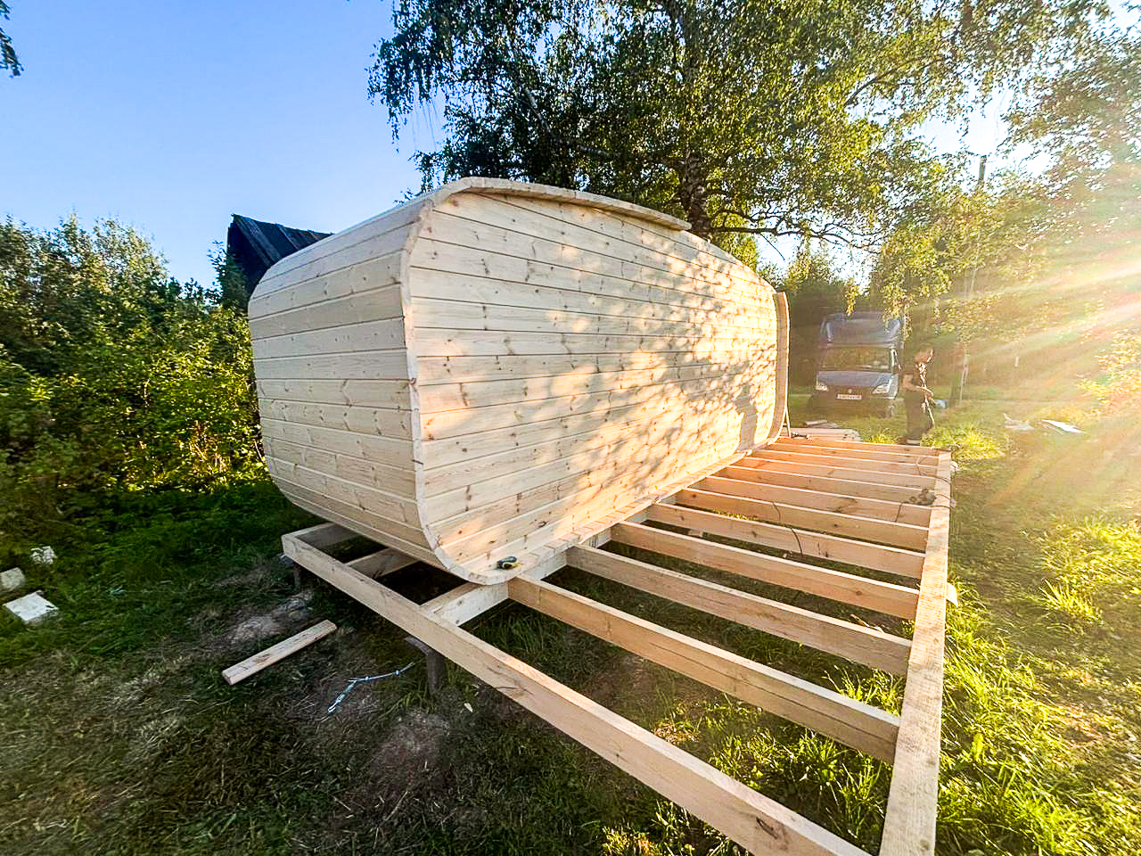- Высота: 2,5 м снаружи / 2,3 м внутри — просторнее стандартной бочки;