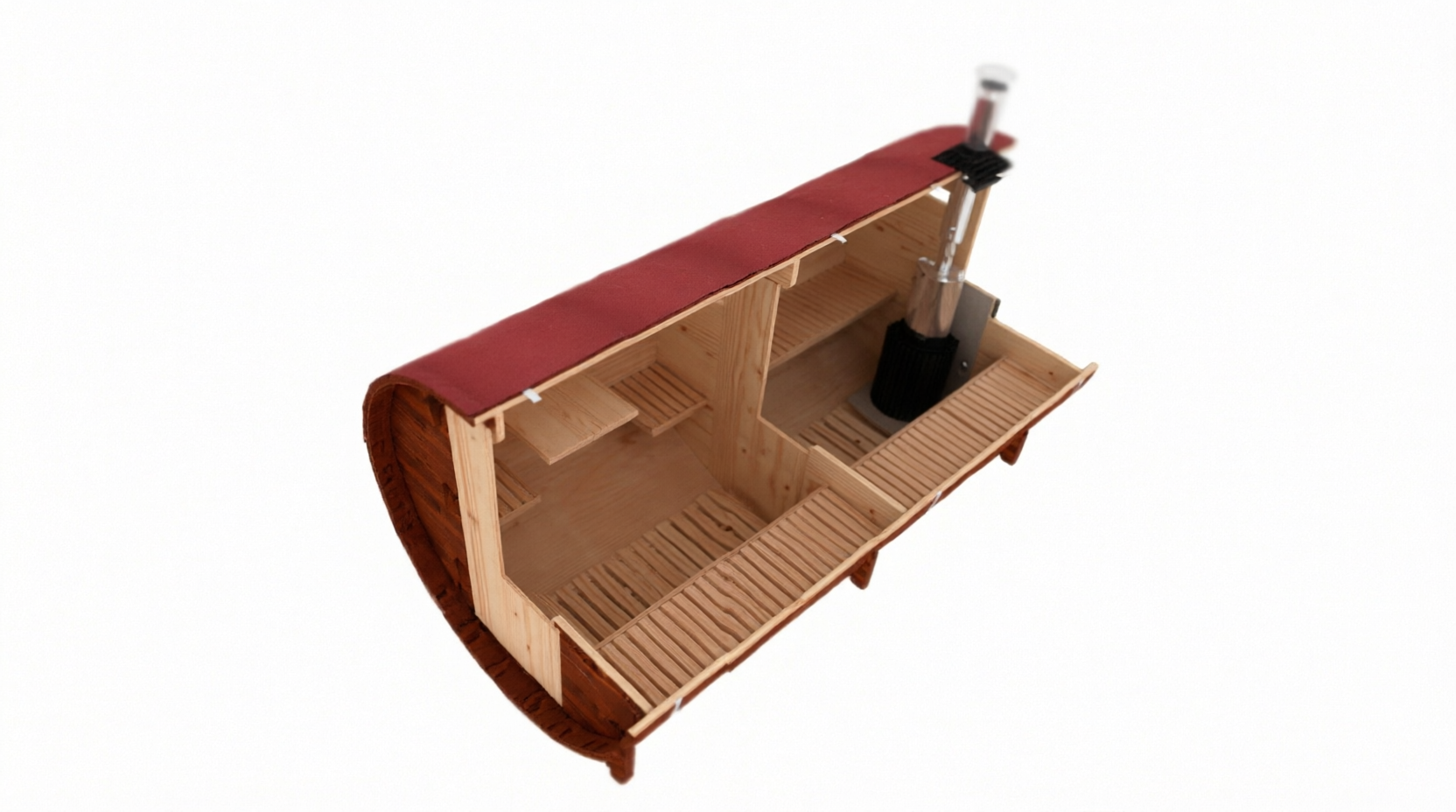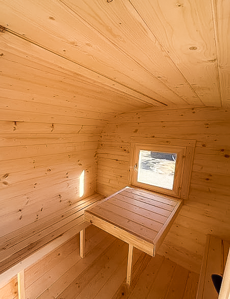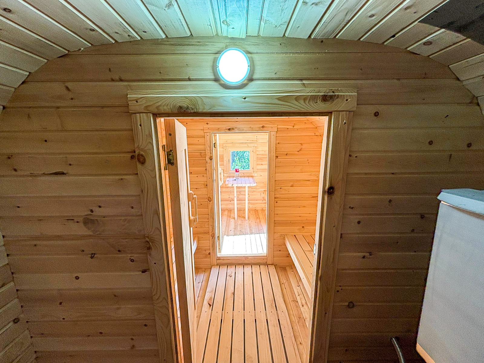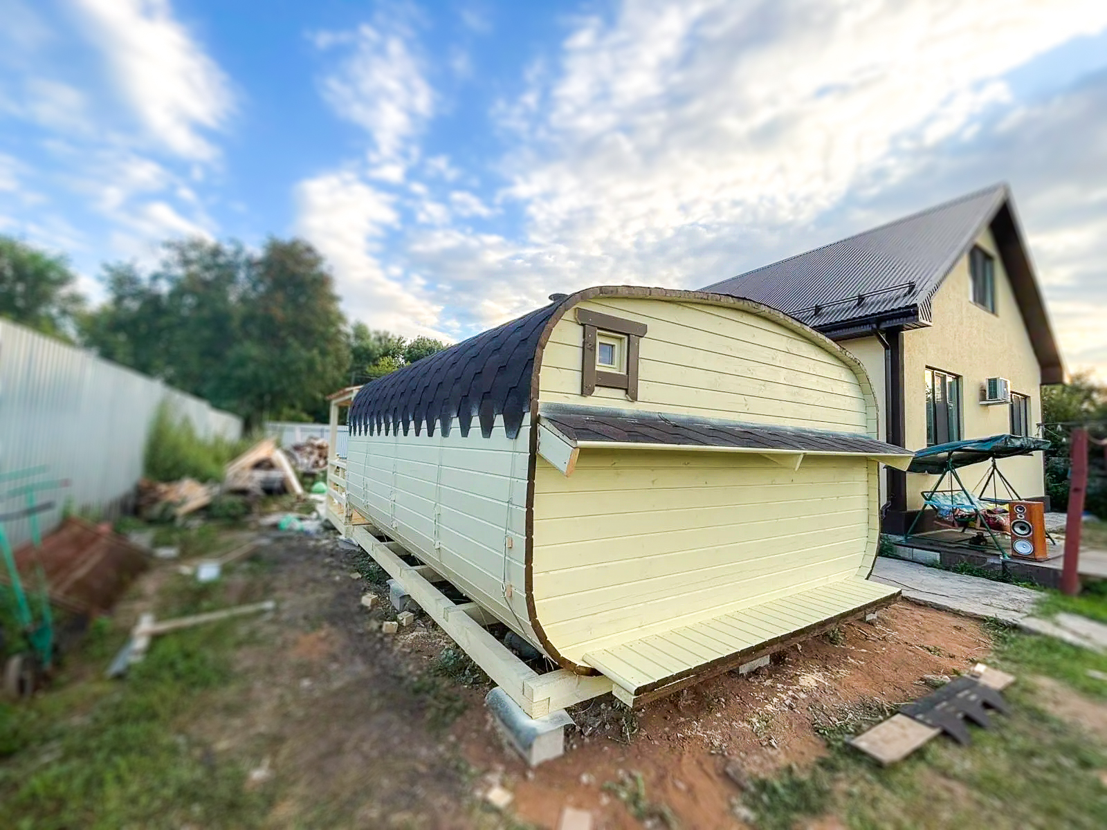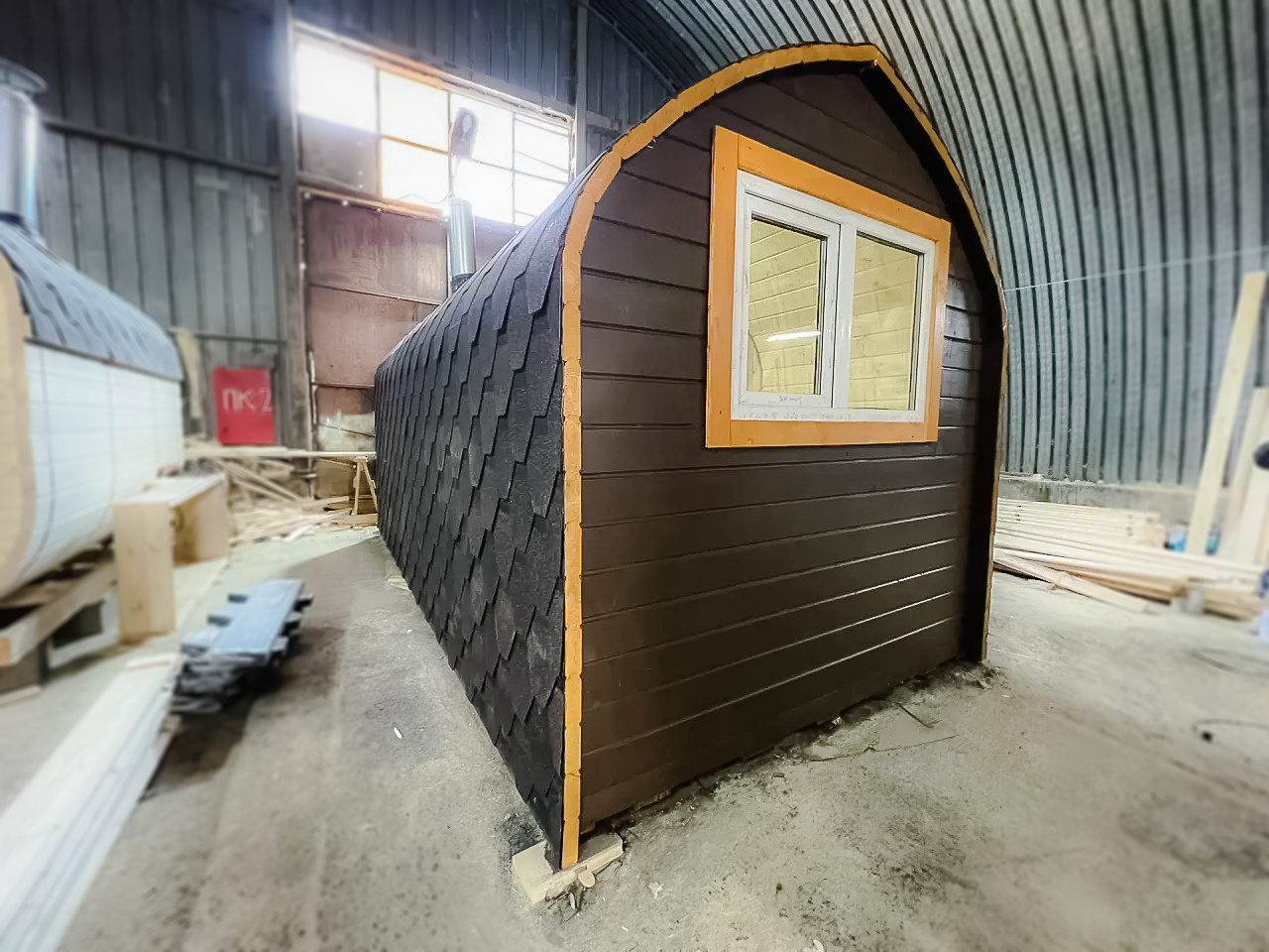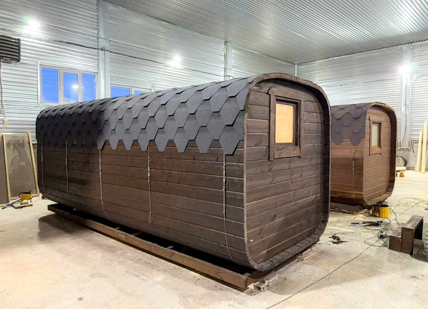 - Высота: 2,5 м снаружи / 2,3 м внутри — просторнее стандартной бочки;