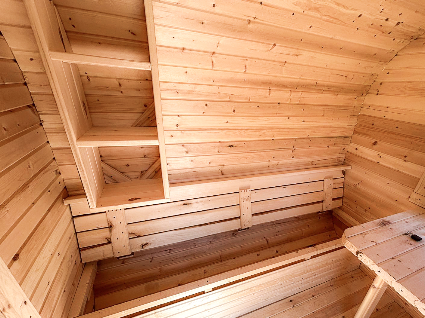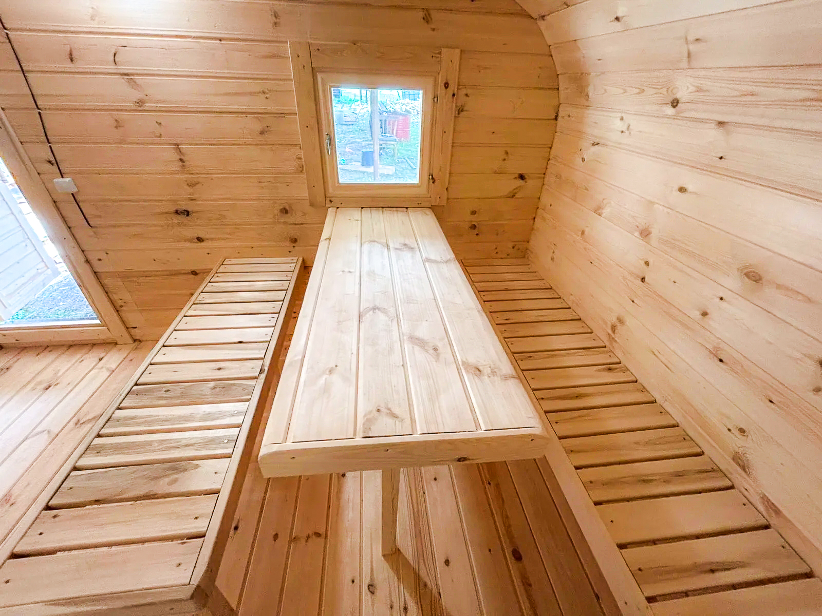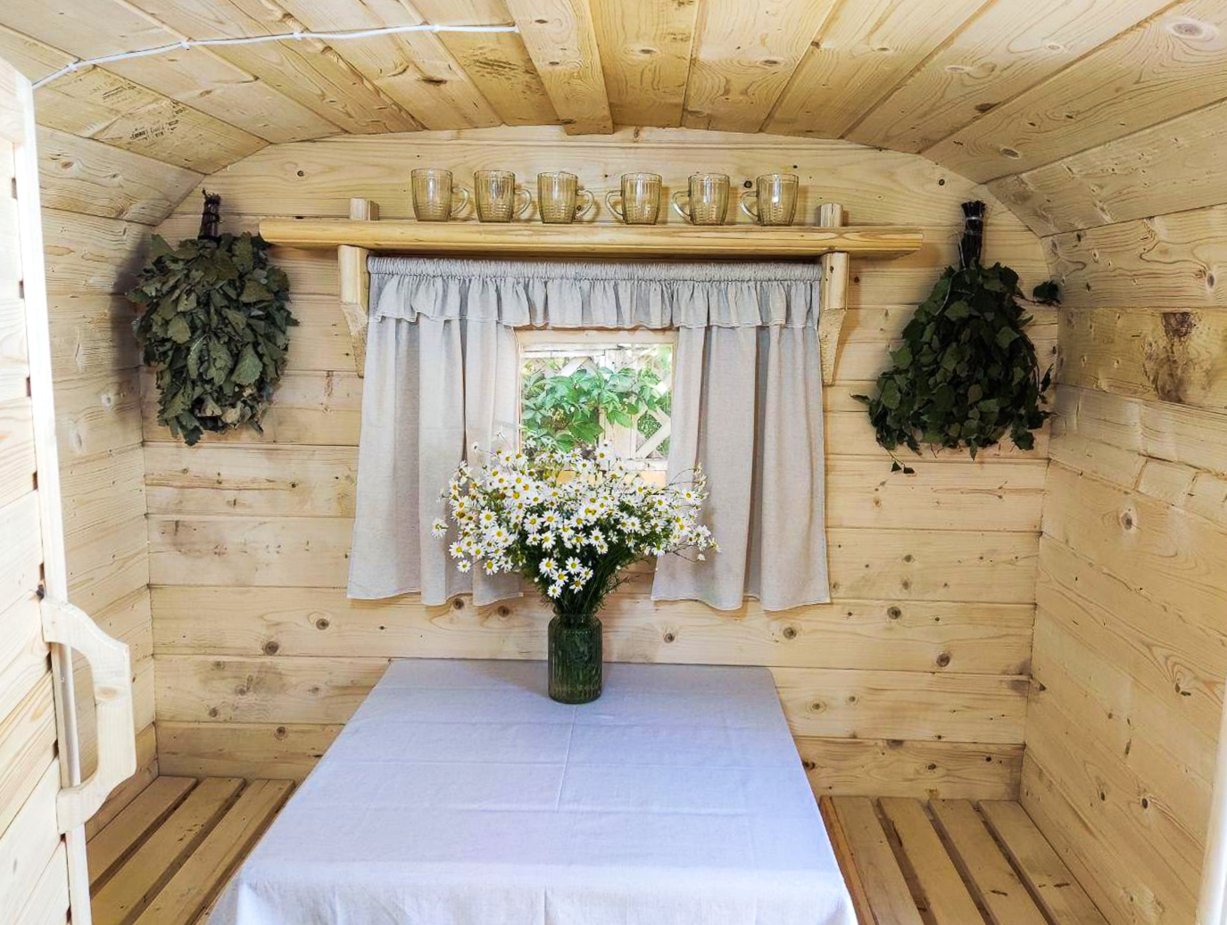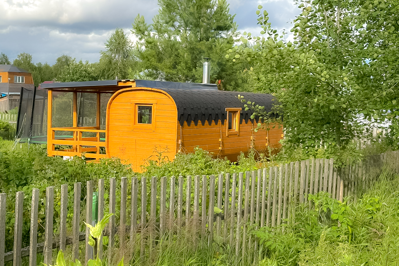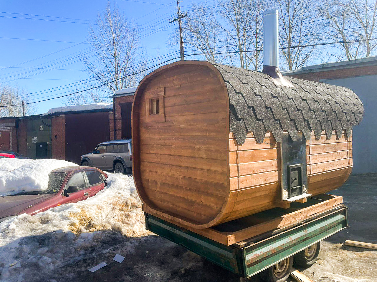 - Высота: 2,5 м снаружи / 2,3 м внутри — просторнее стандартной бочки;