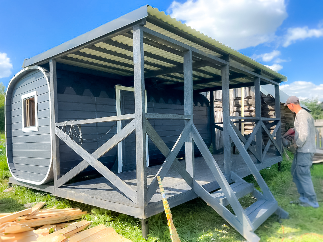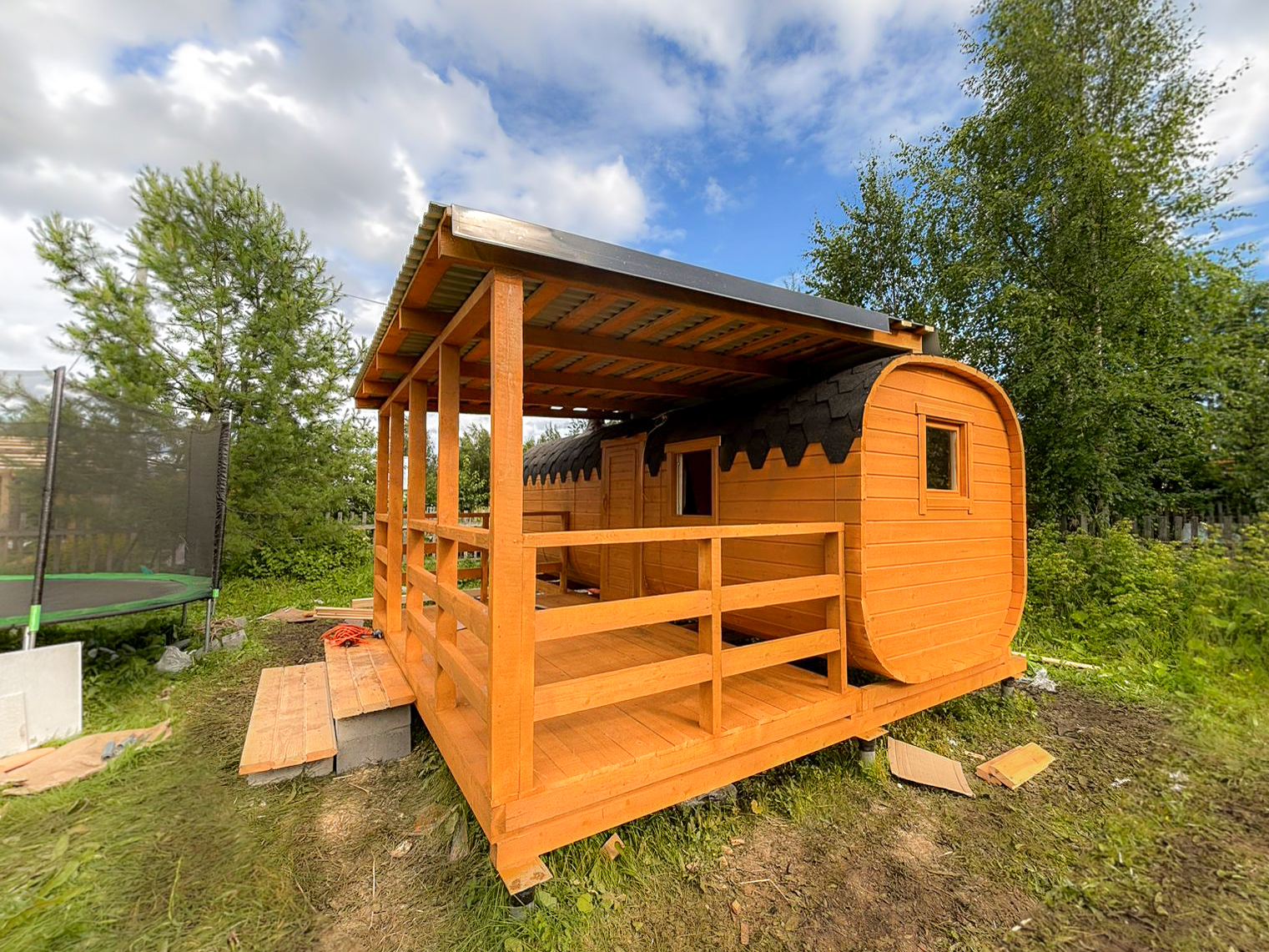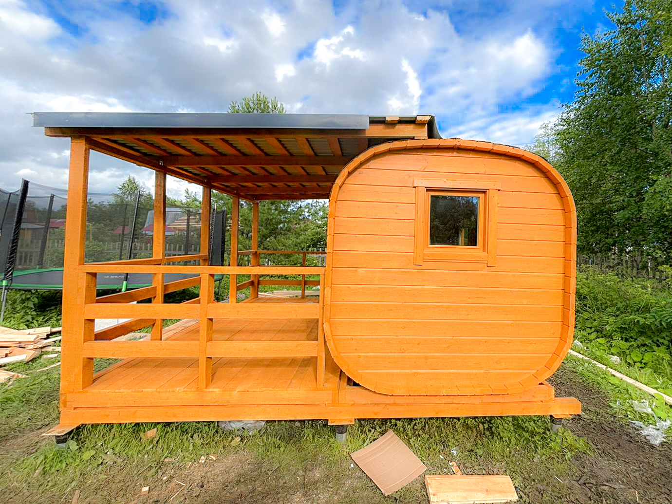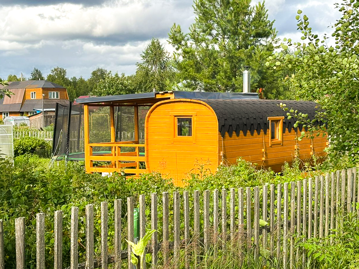 Баня-бочка с террасой