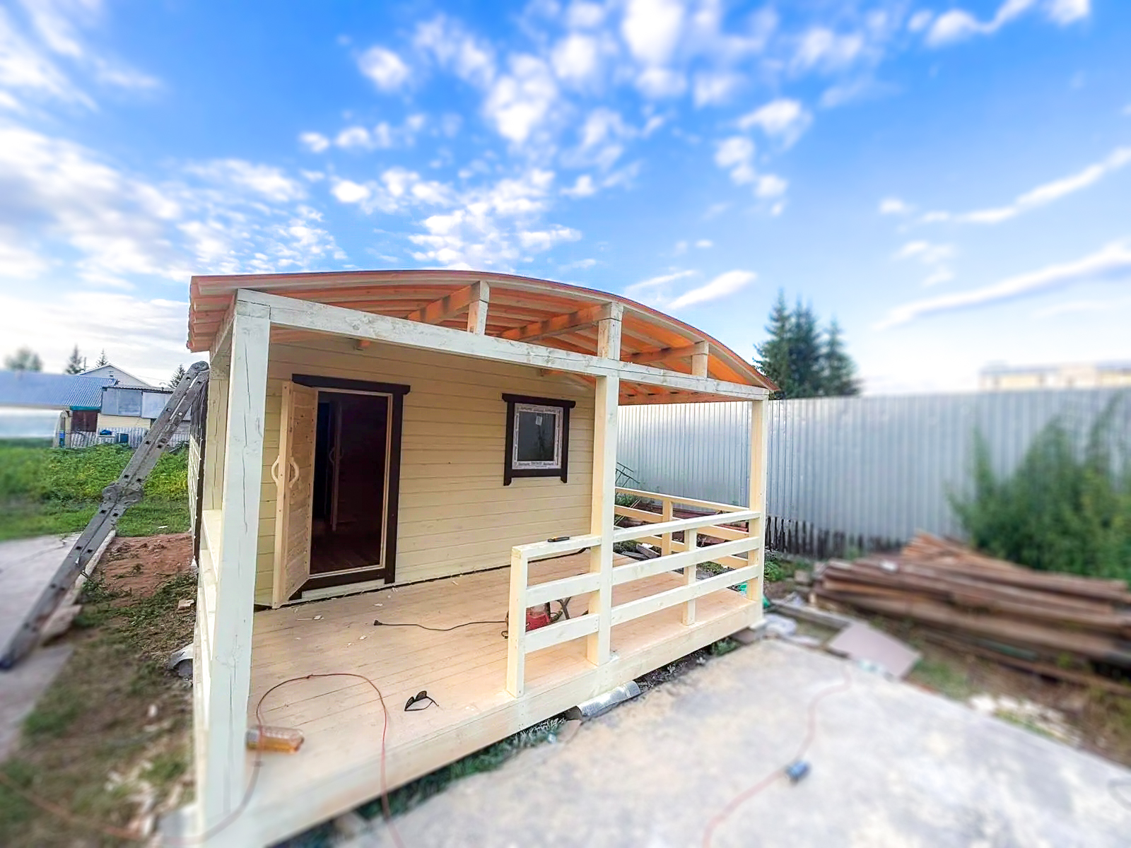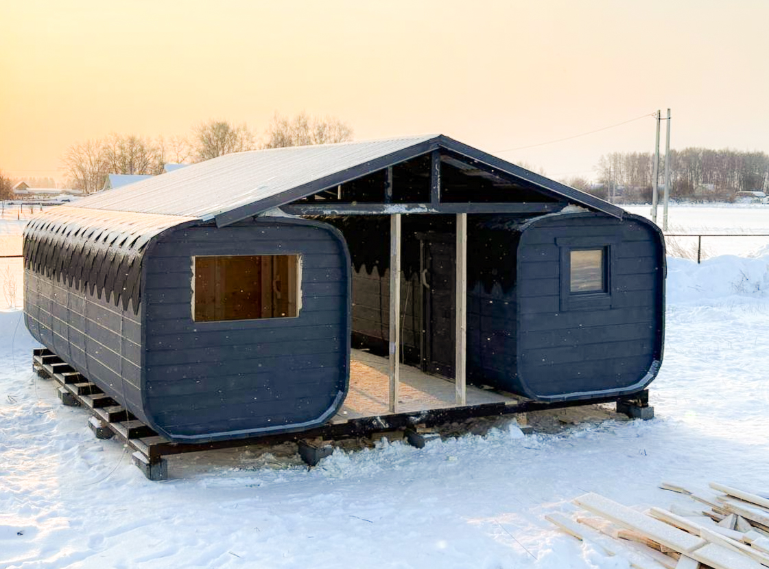 - Всё включено: печь, бак 40л, электрика, фундамент, кровля, двери, окна, покраска.