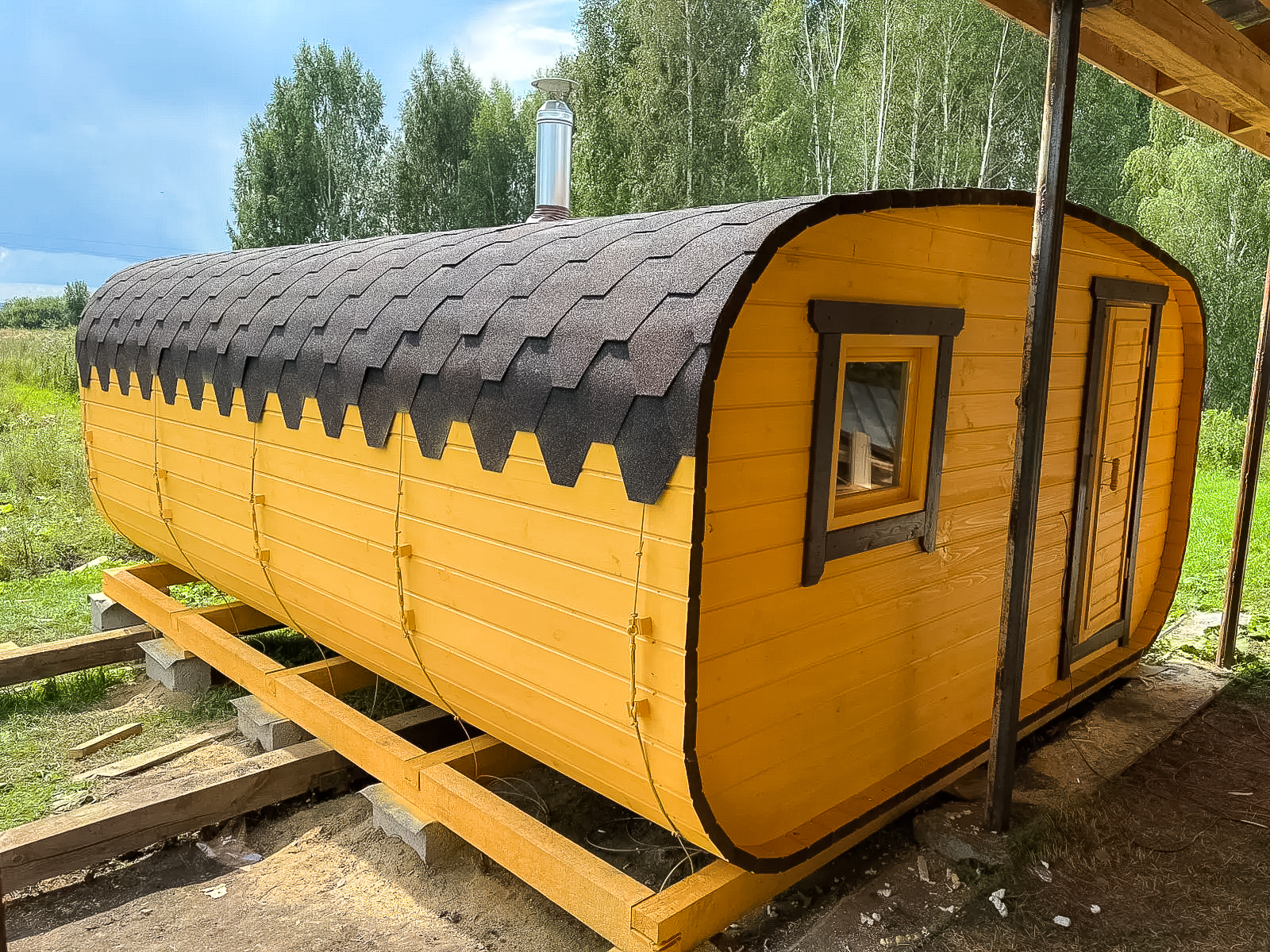 - Все включено: печь, дымоход СЭНДВИЧ, пологи из липы, кровля;