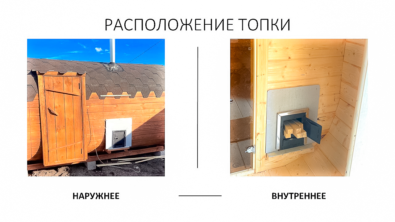 Боковой вход и топка на улицу — бесплатно (экономия 15 000₽).